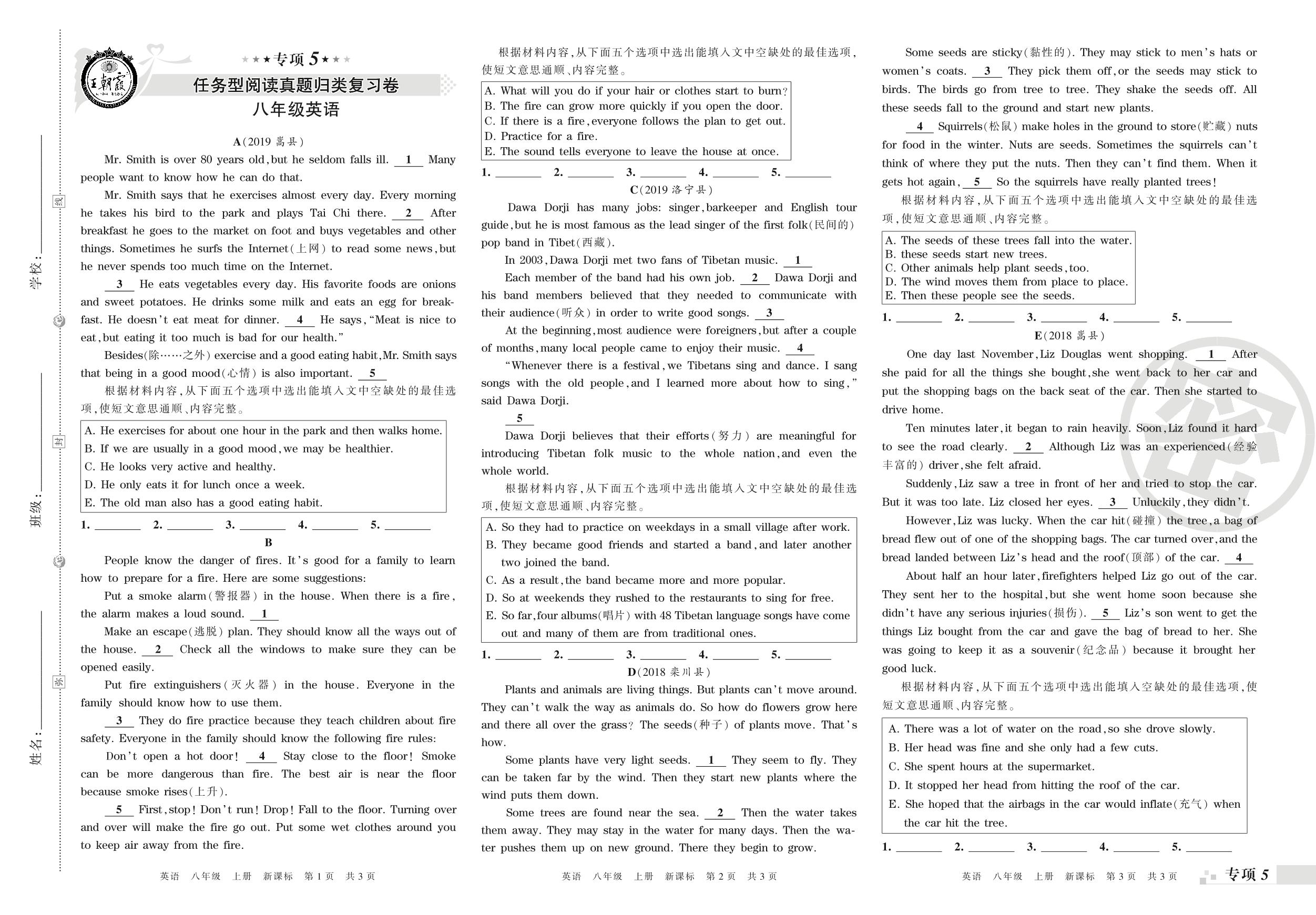 王朝霞期末专项卷——任务型阅读、词语运用真题归类复习八年级上册英语(新课版)_R210809105812【0】