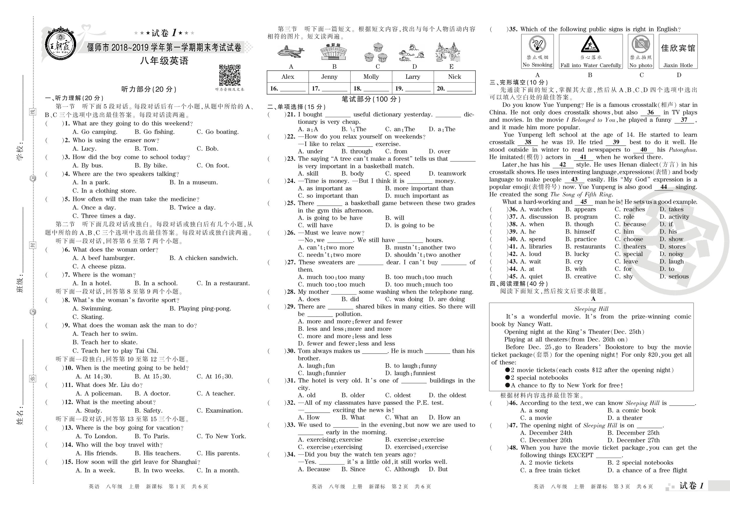 2018-2019学年第一学期偃师市八年级英语试卷(新课版)【1】