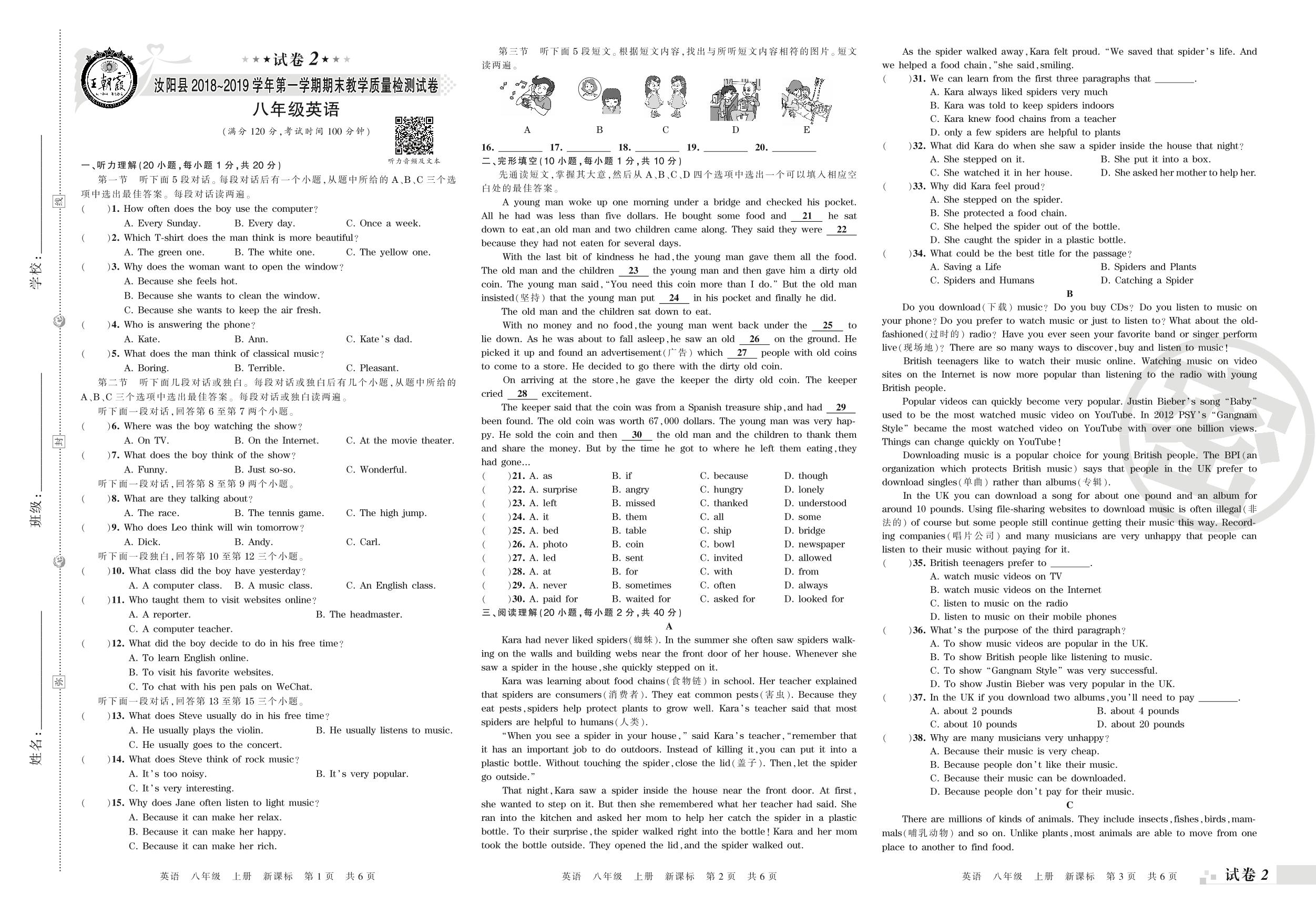 2018-2019学年第一学期汝阳市八年级英语试卷(新课版)【2】