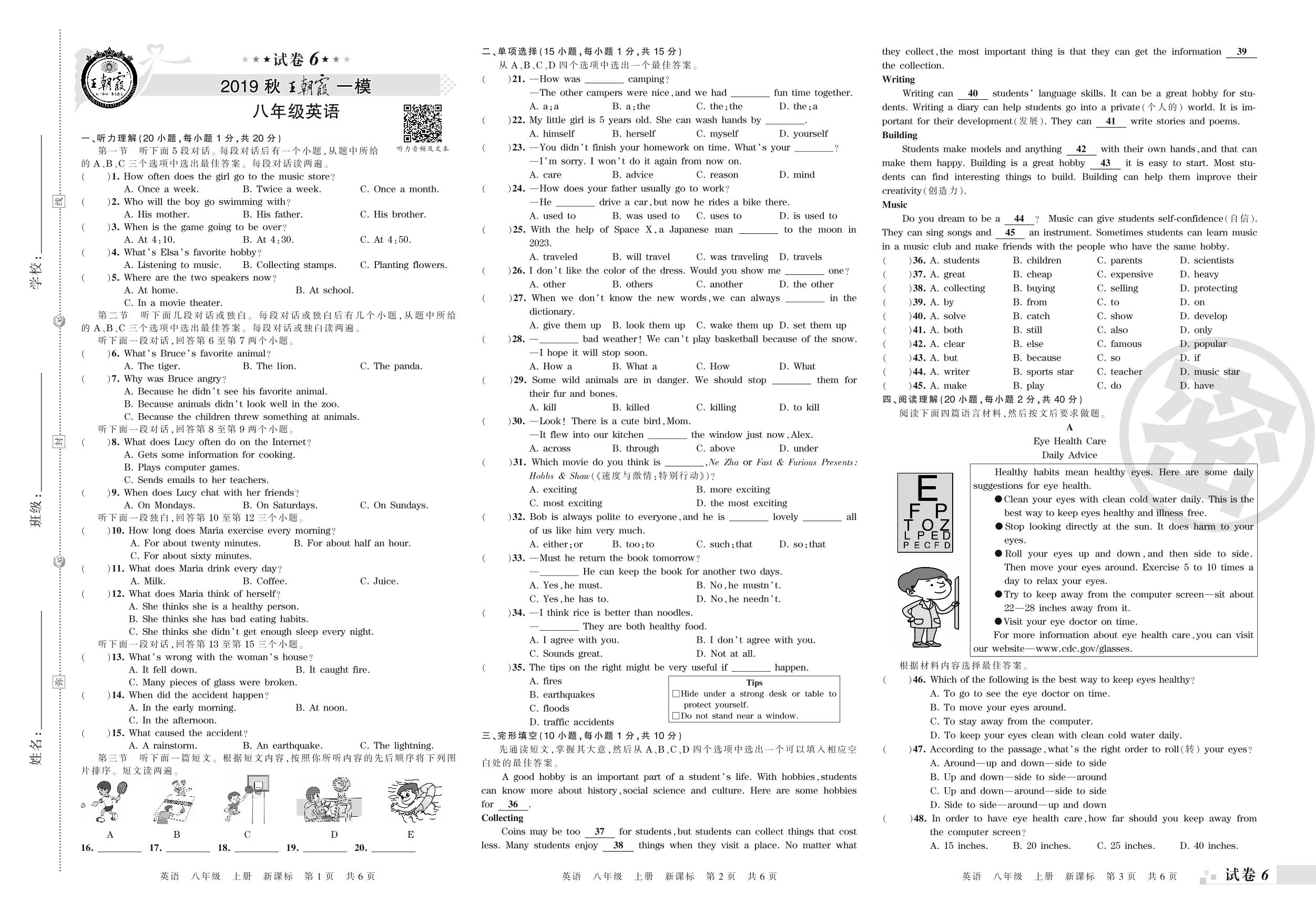 王朝霞期末模拟卷八年级上册英语(新课版)_R210809110005【6】
