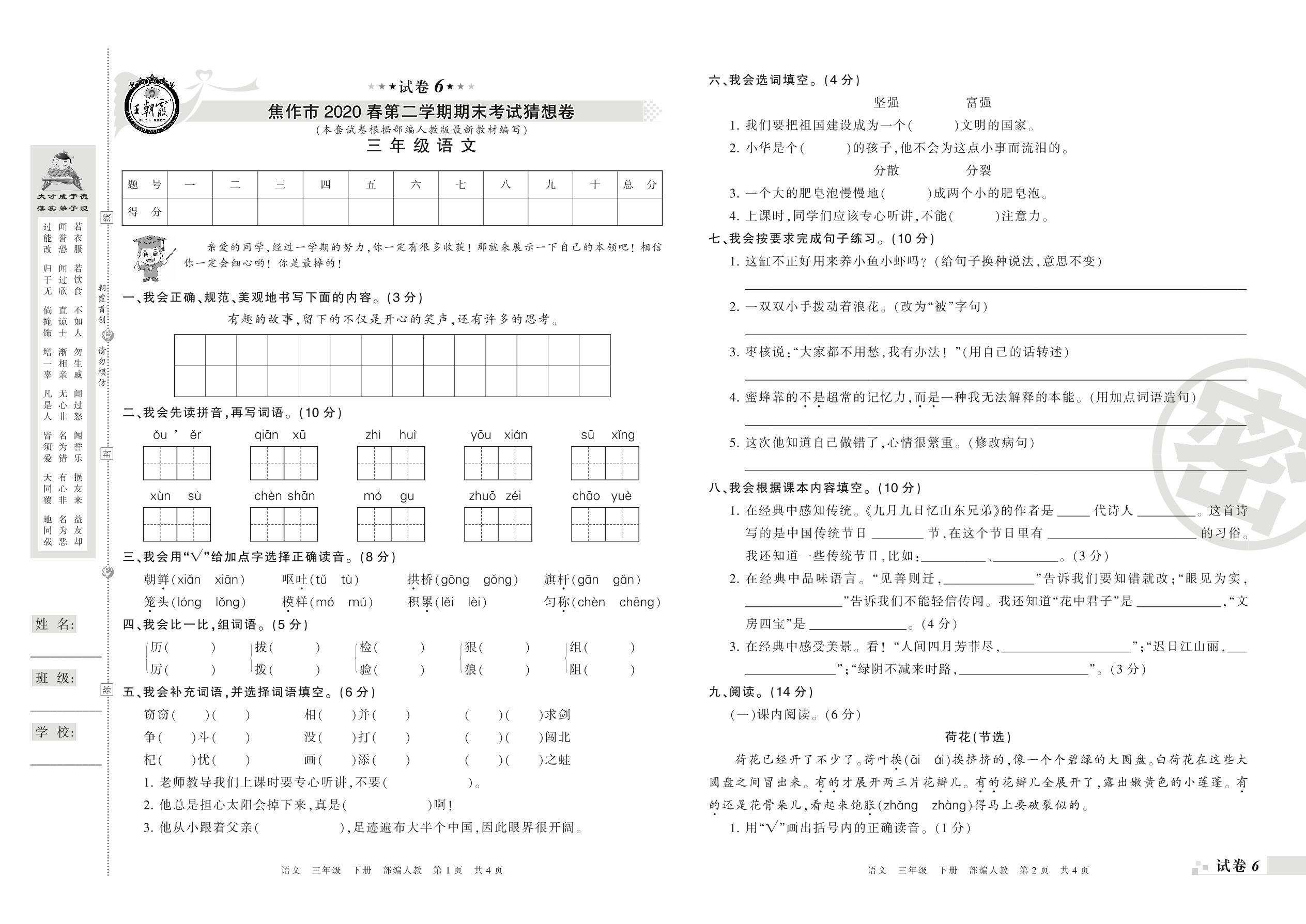 2018-2019学年第二学期焦作市猜想卷三年级语文试卷(人教版)【6】