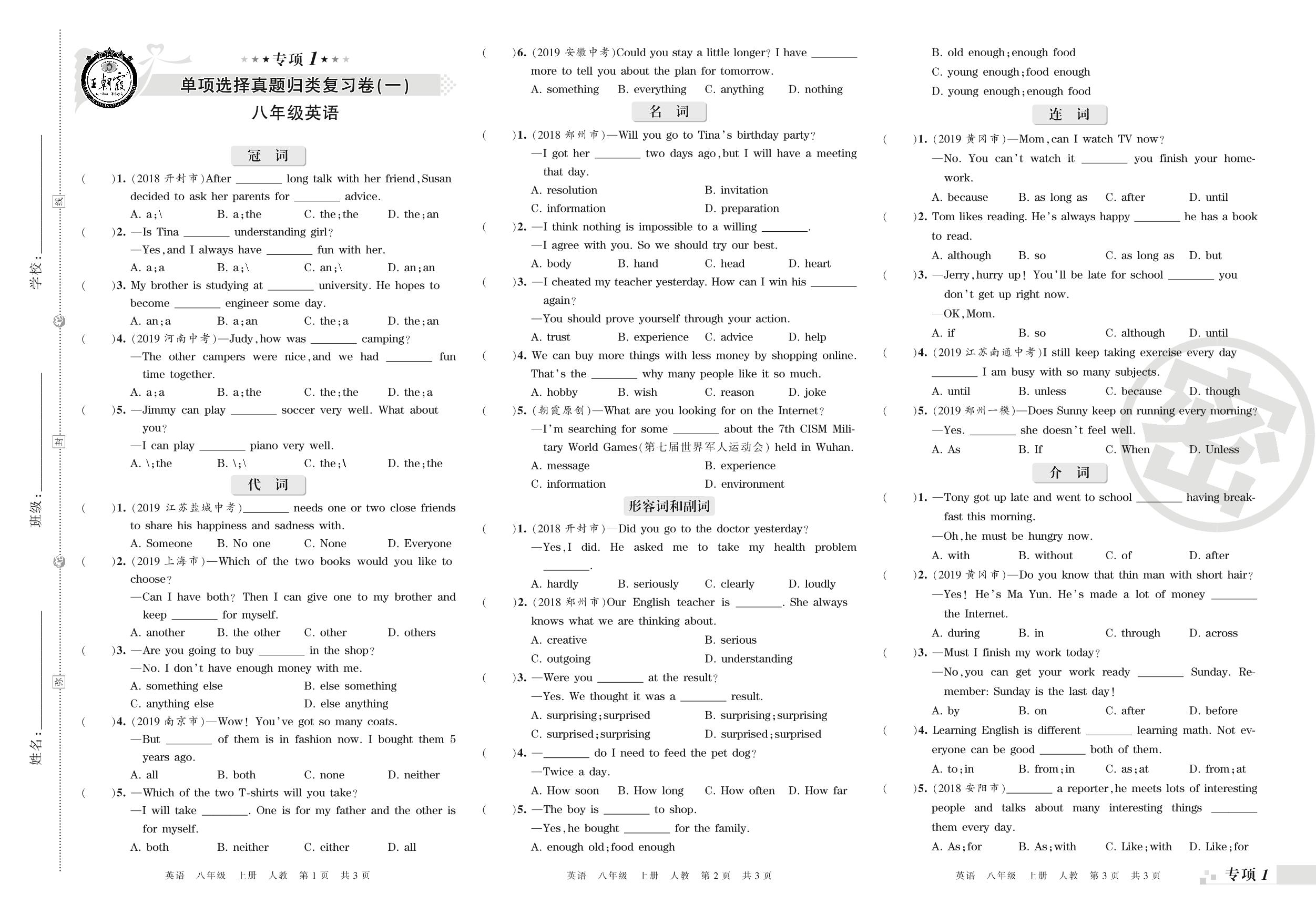 王朝霞期末专项卷——单项选择真题归类复习八年级上册英语(人教版)_R210809110744【0】