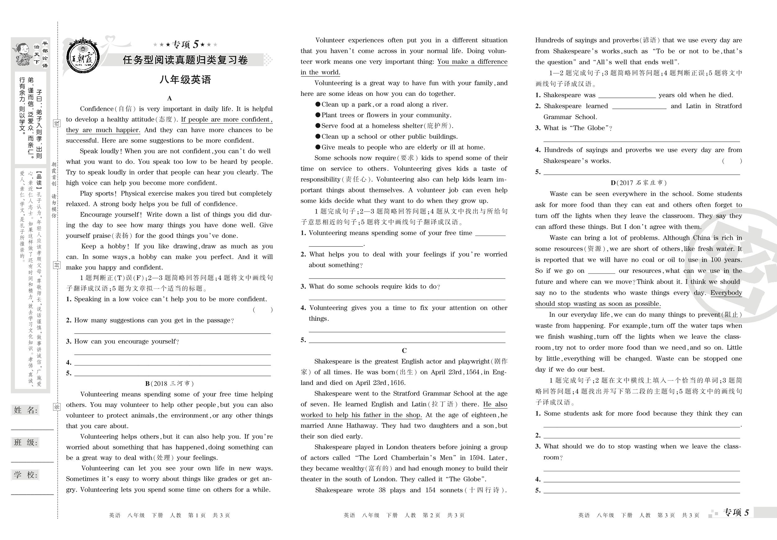 王朝霞期末专项卷——任务型阅读、词语运用真题归类复习卷八年级下册英语(人教版)_R210809110925【0】
