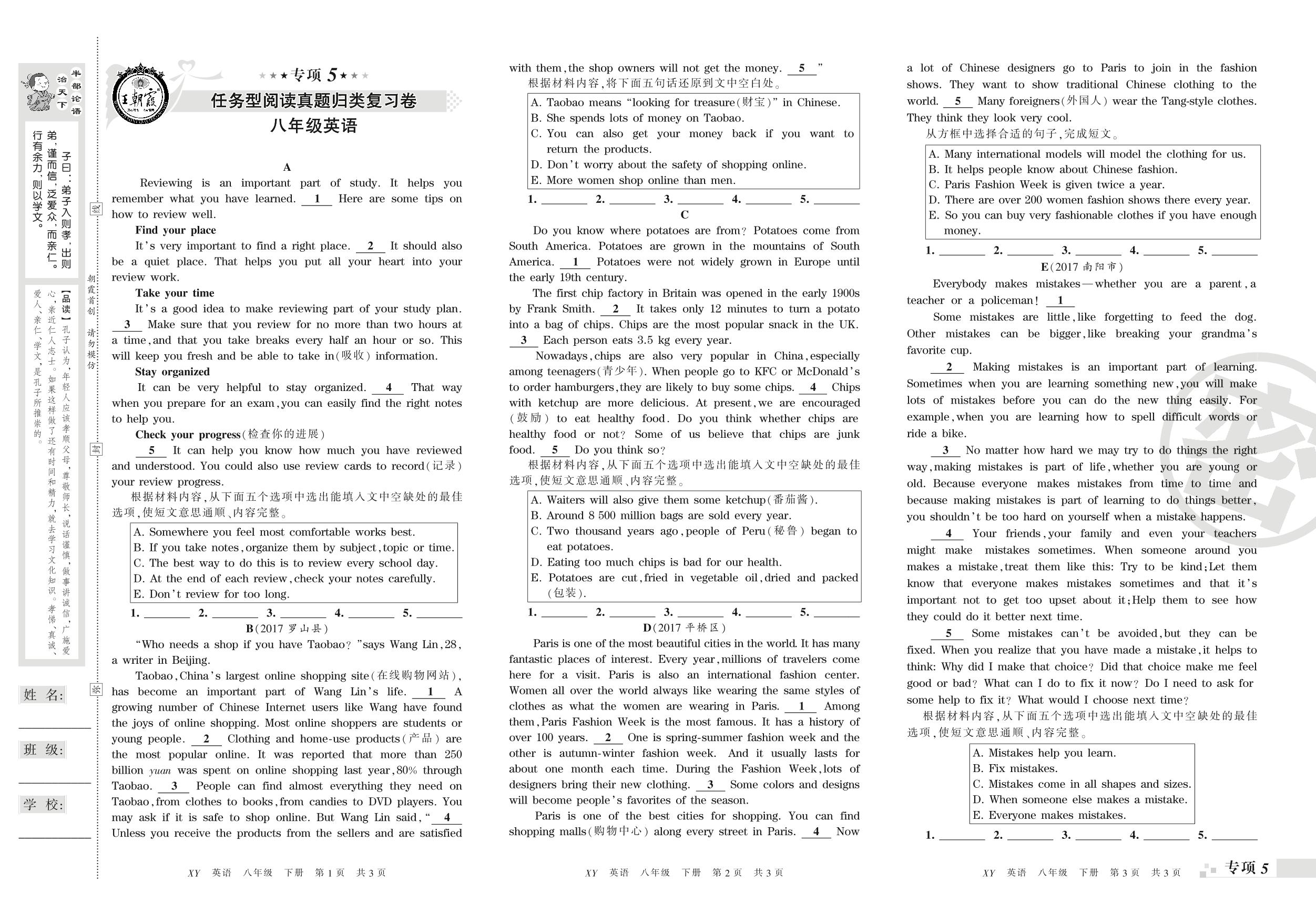 王朝霞期末专项卷——任务型阅读、词语运用真题归类复习卷八年级下册英语(新课版)_R210809111424【0】