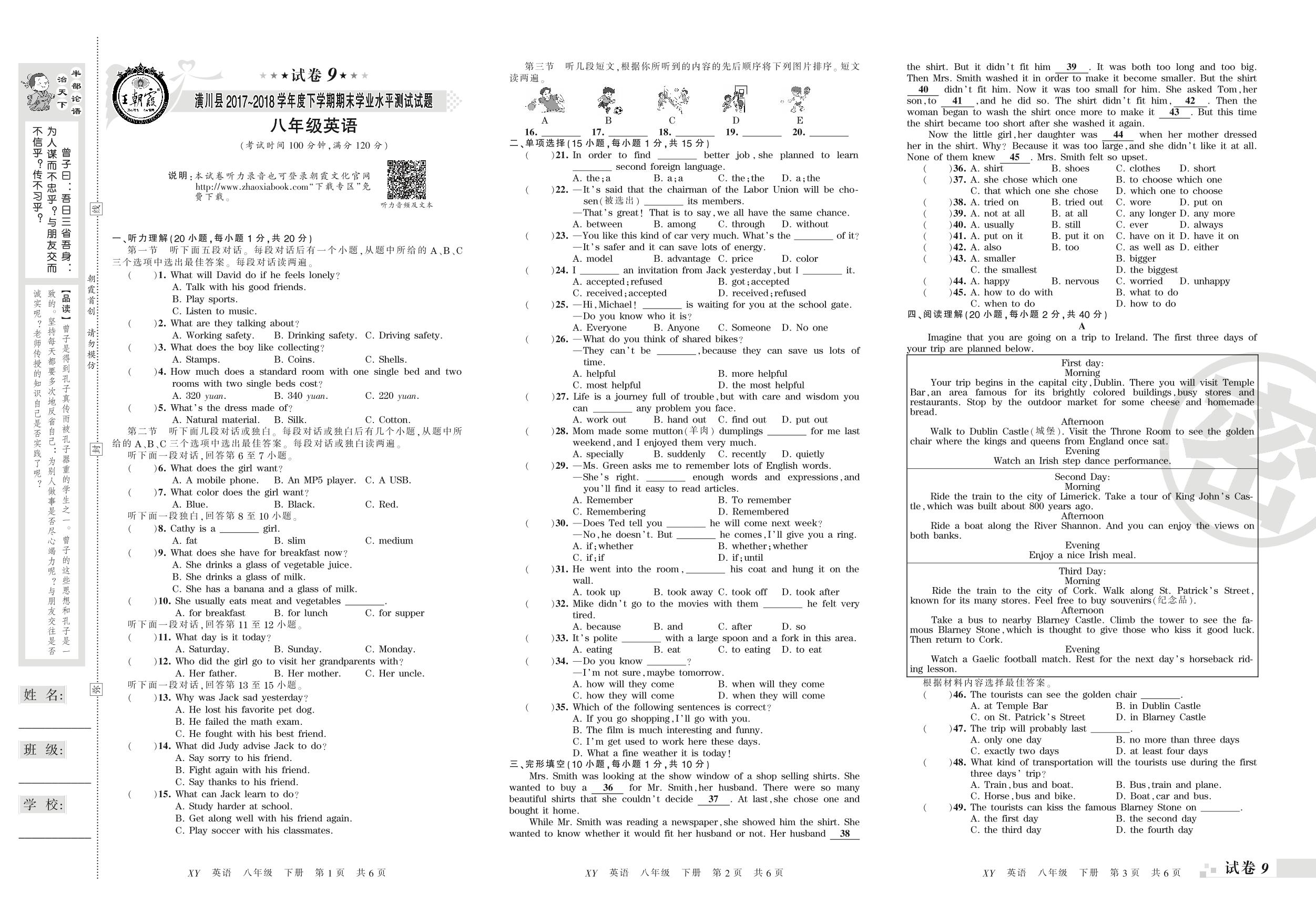 2017-2018学年第二学期信阳市潢川县八年级英语试卷(新课版)【9】