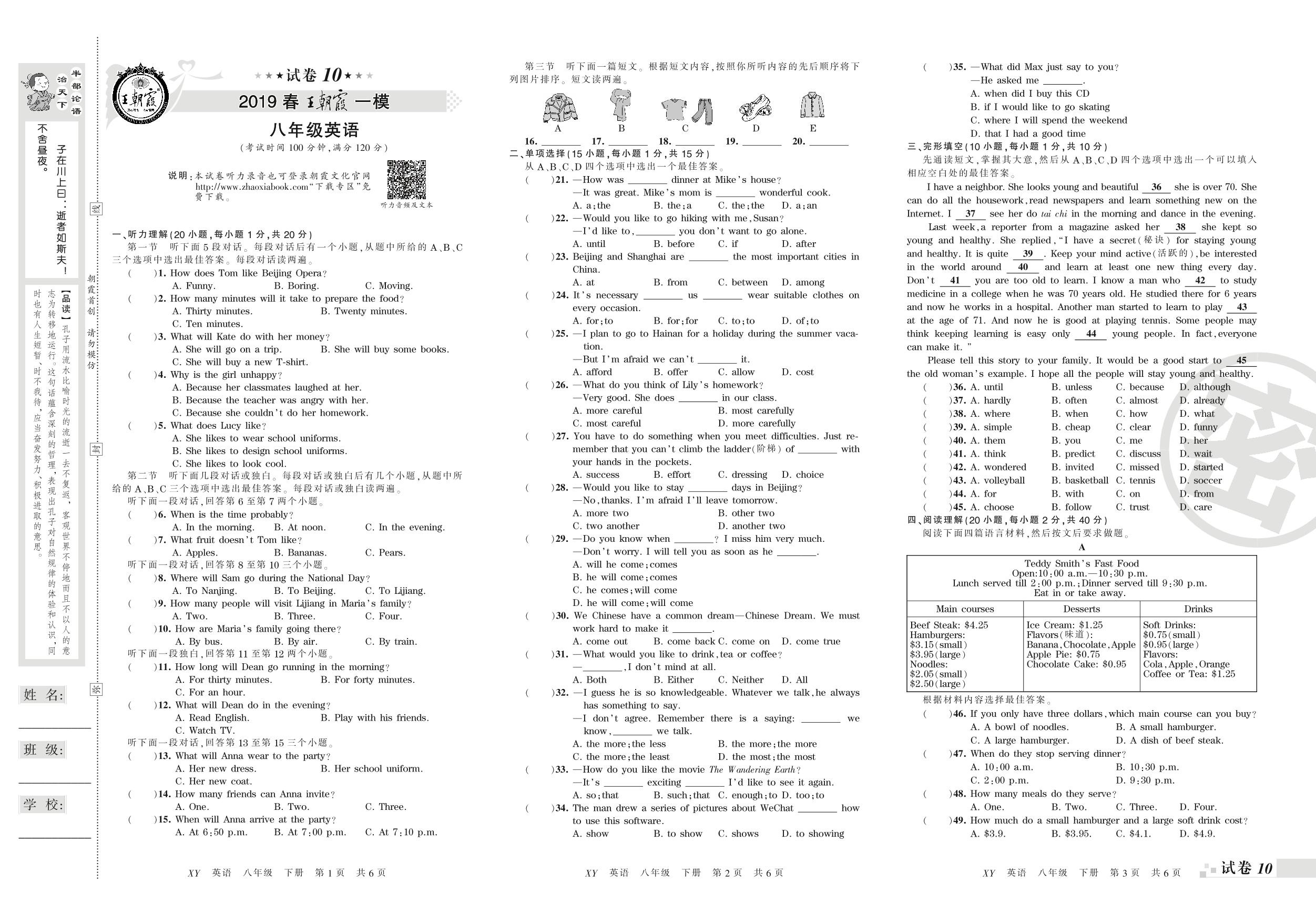 王朝霞期末模拟卷八年级下册英语(新课版)_R210809111604【10】