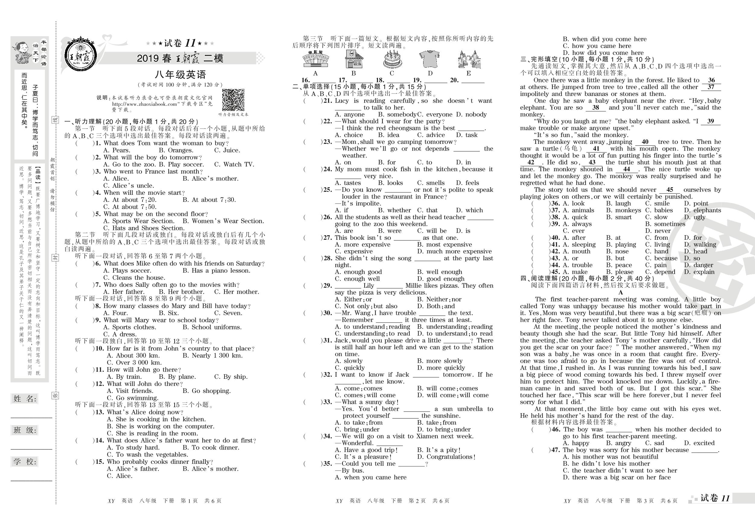 王朝霞期末模拟卷八年级下册英语(新课版)_R210809111615【11】