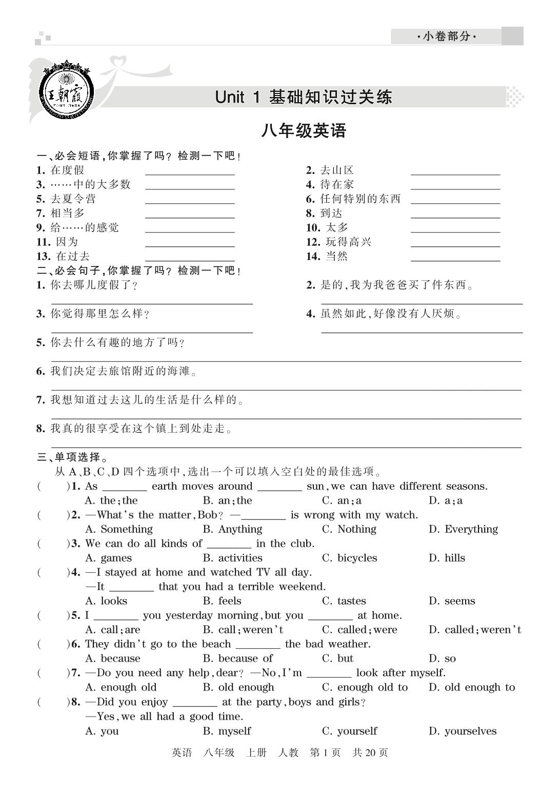 王朝霞期末小卷——基础知识过关练八年级上册英语(人教版)_R210809111625【0】