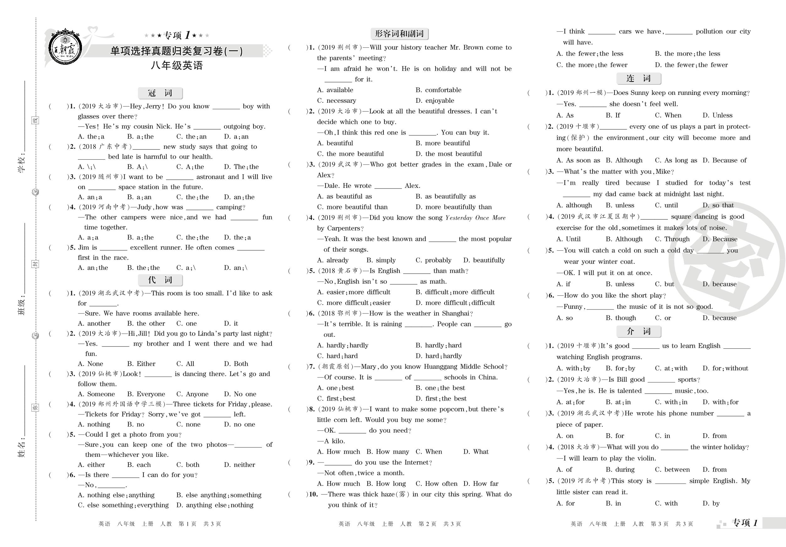 王朝霞期末专项卷——单项选择真题归类复习八年级上册英语(人教版)_R210809111637【0】