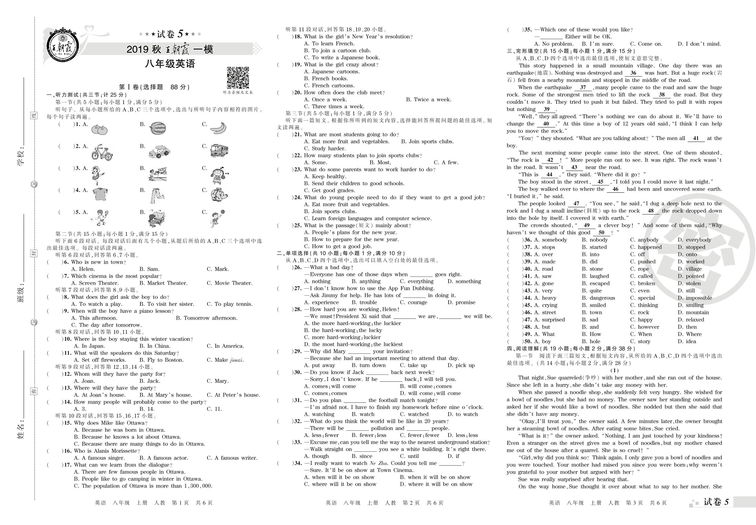 王朝霞期末模拟卷八年级上册英语(人教版)_R210809111736【5】