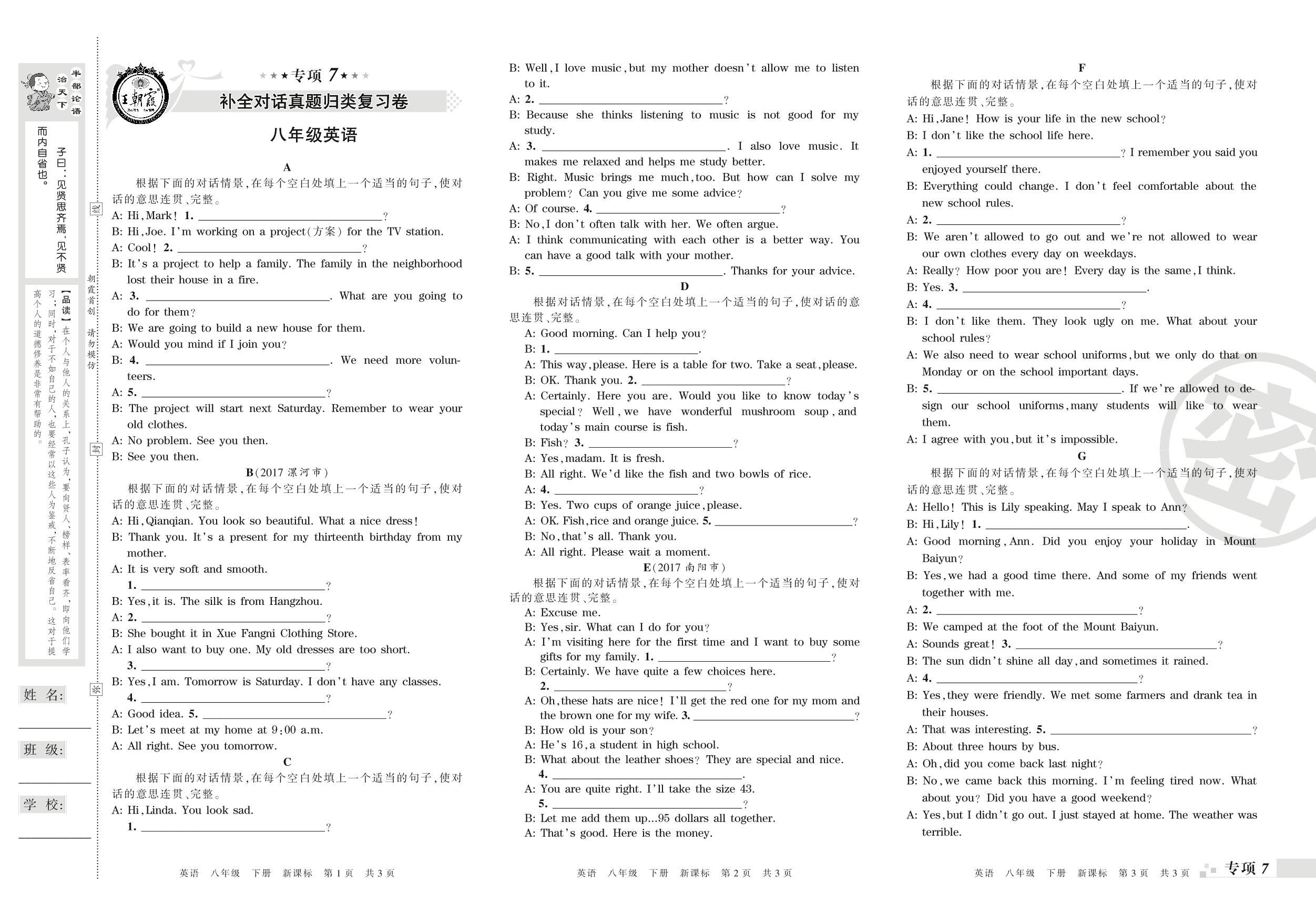 王朝霞期末专项卷——补全对话、书面表达真题归类复习卷八年级下册英语(新课版)_R210809111843【0】