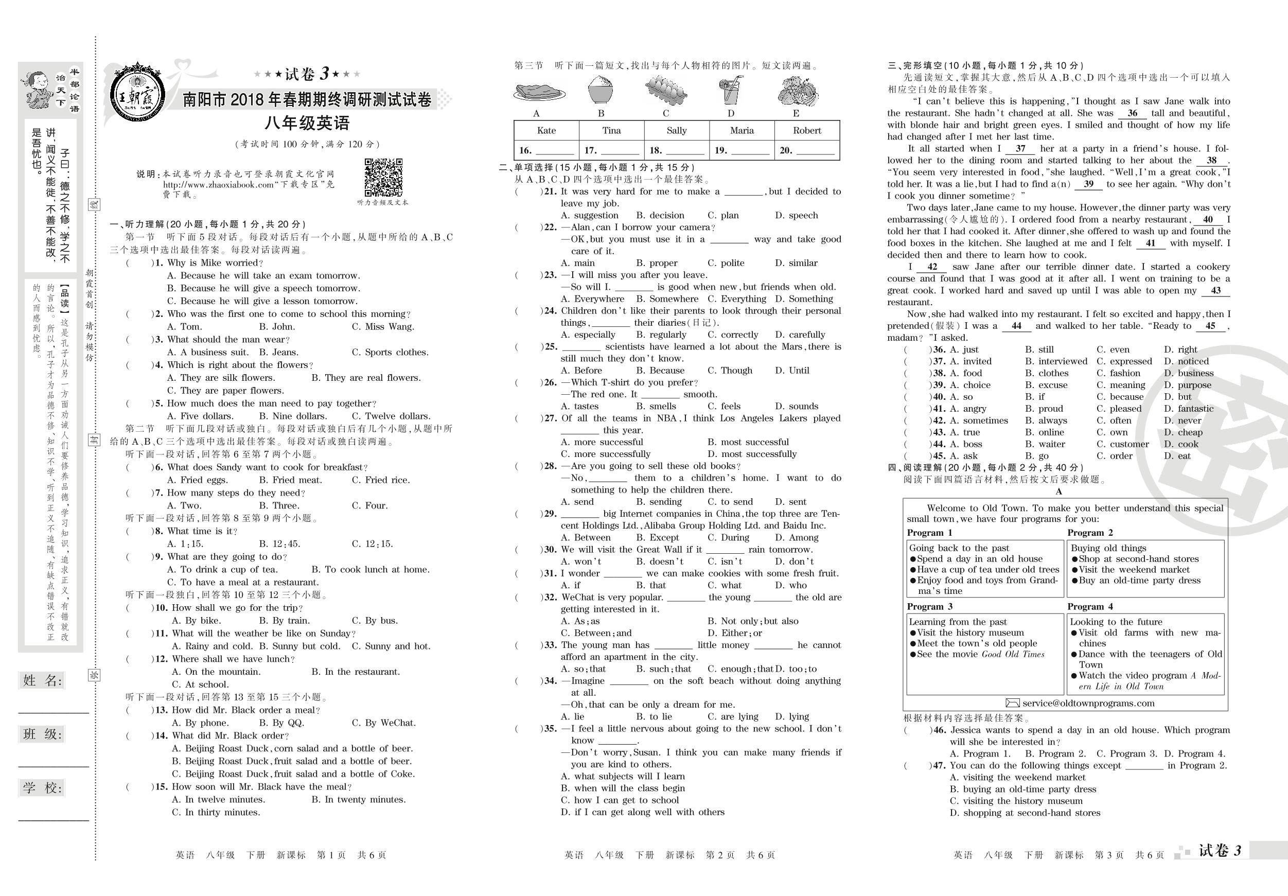 2017-2018学年第二学期南阳市八年级英语试卷(新课版)【3】