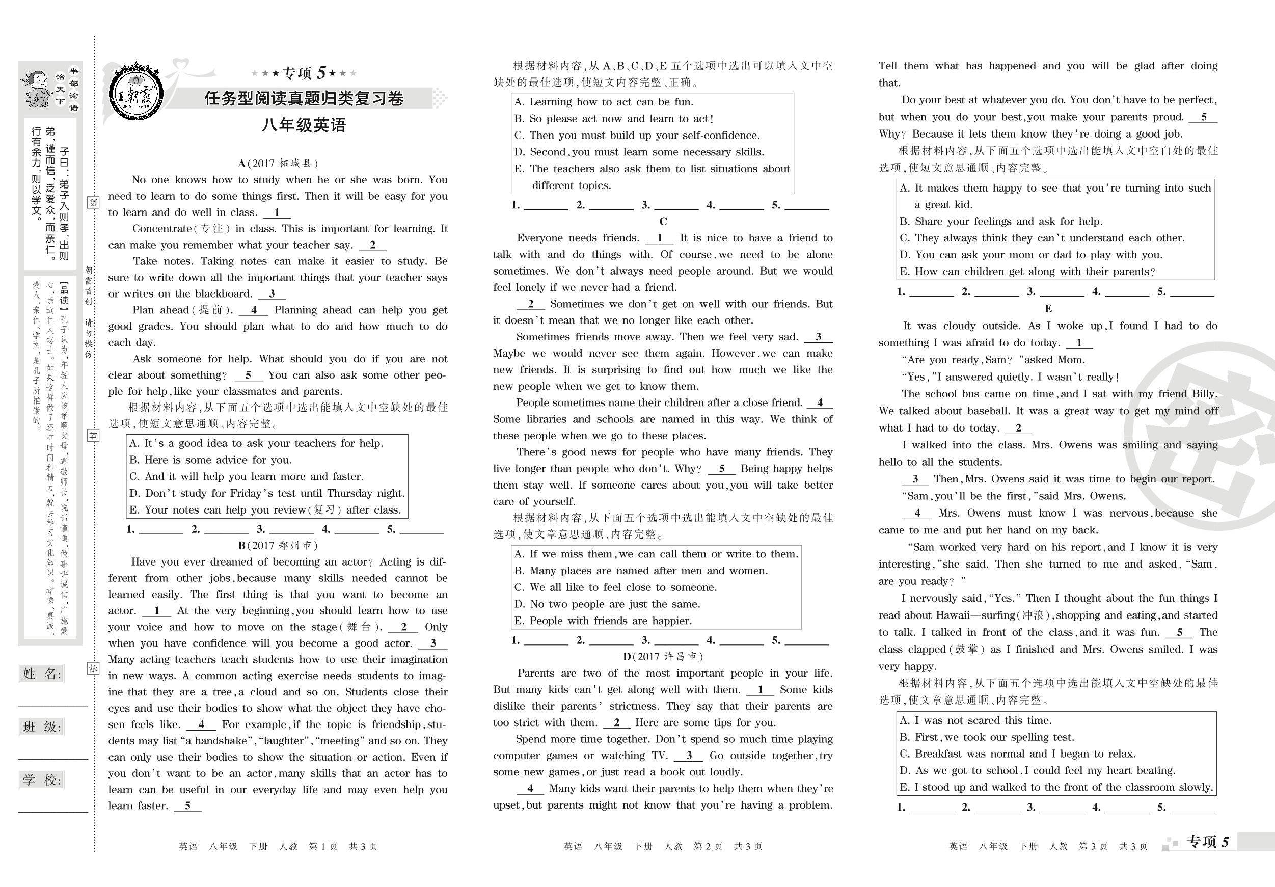 王朝霞期末专项卷——任务型阅读、词语运用真题归类复习卷八年级下册英语(人教版)_R210809112025【0】