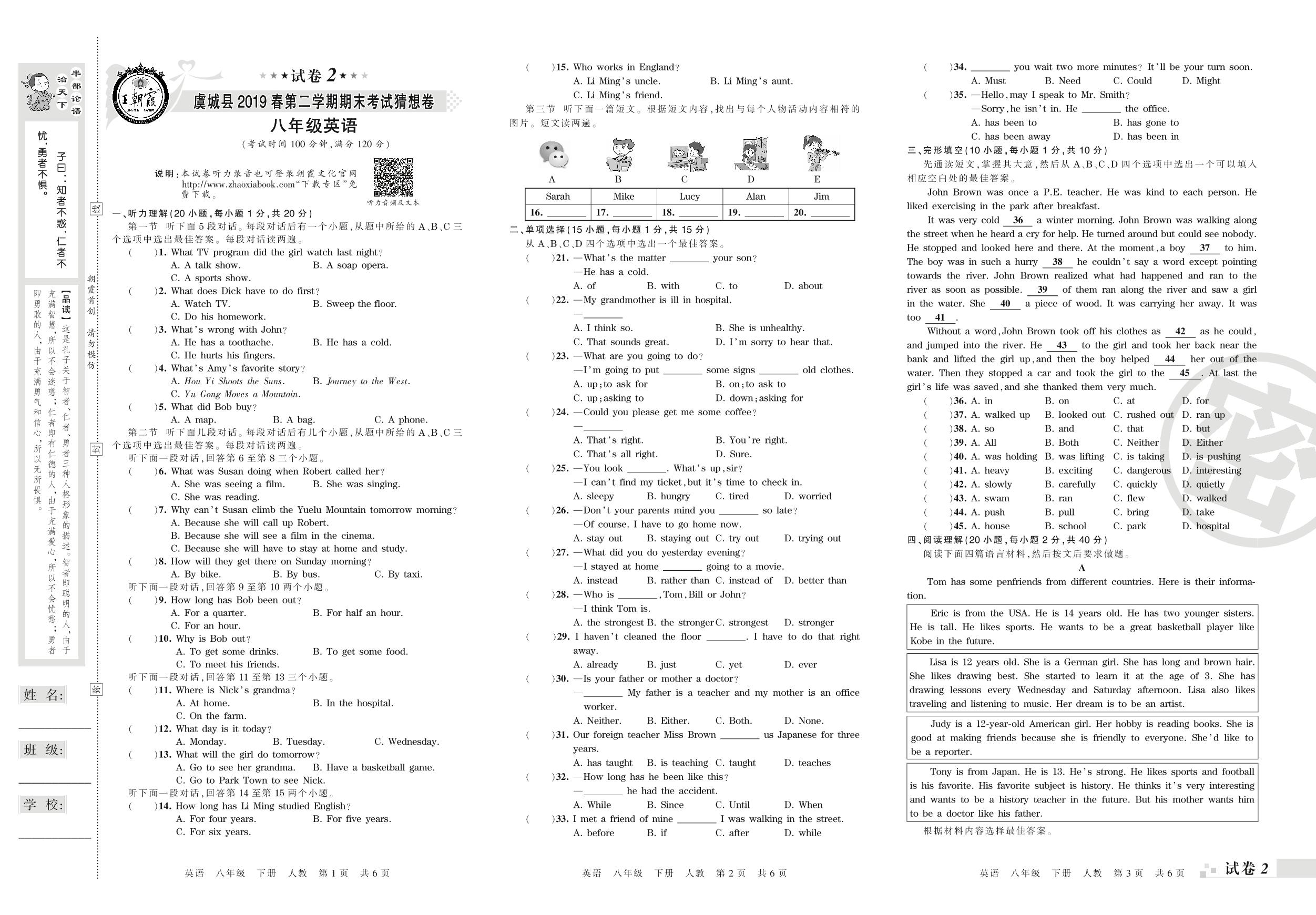 八年级英语人教版下册期末卷