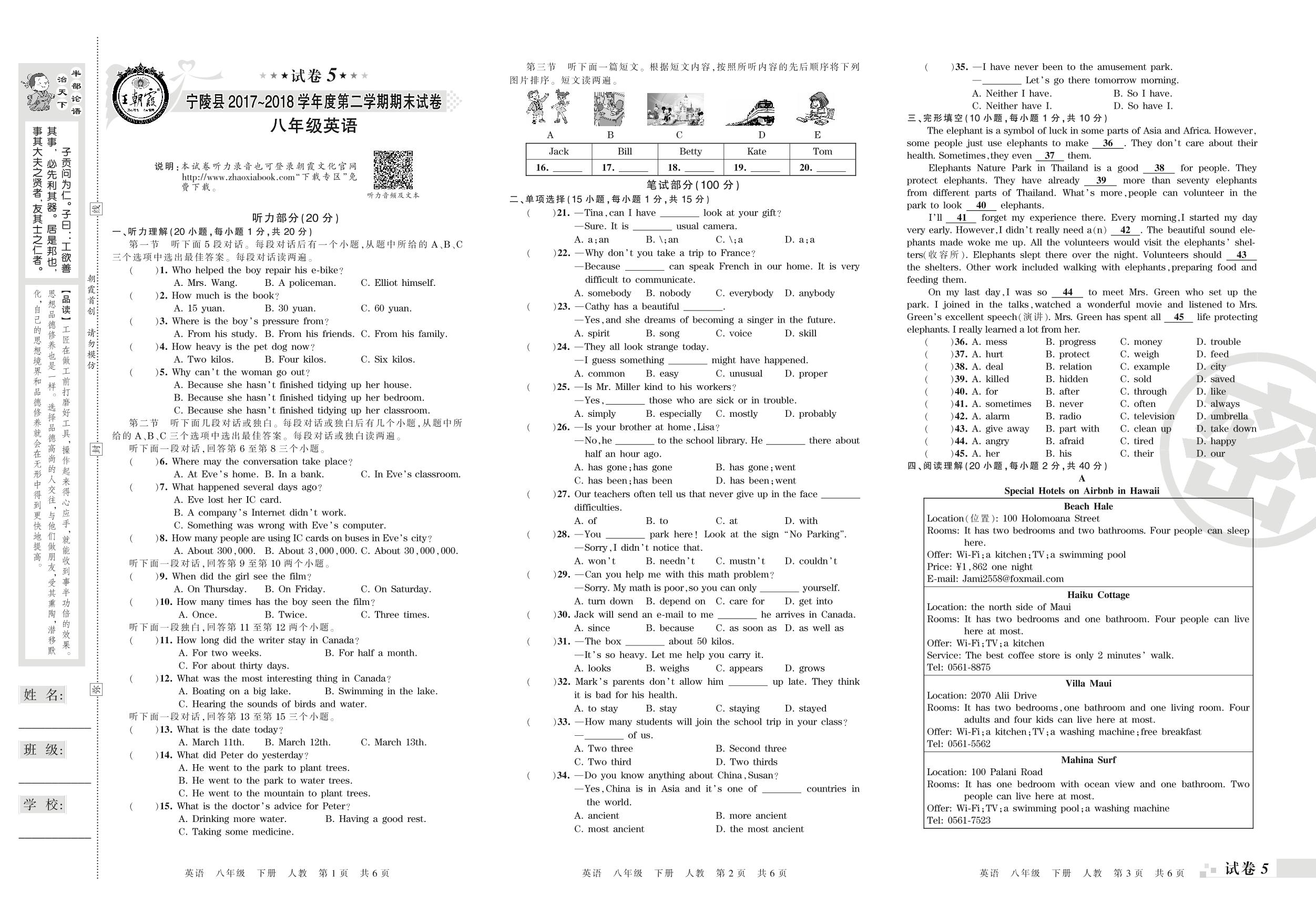 2017-2018学年第二学期商丘市宁陵县八年级英语试卷(人教版)【5】