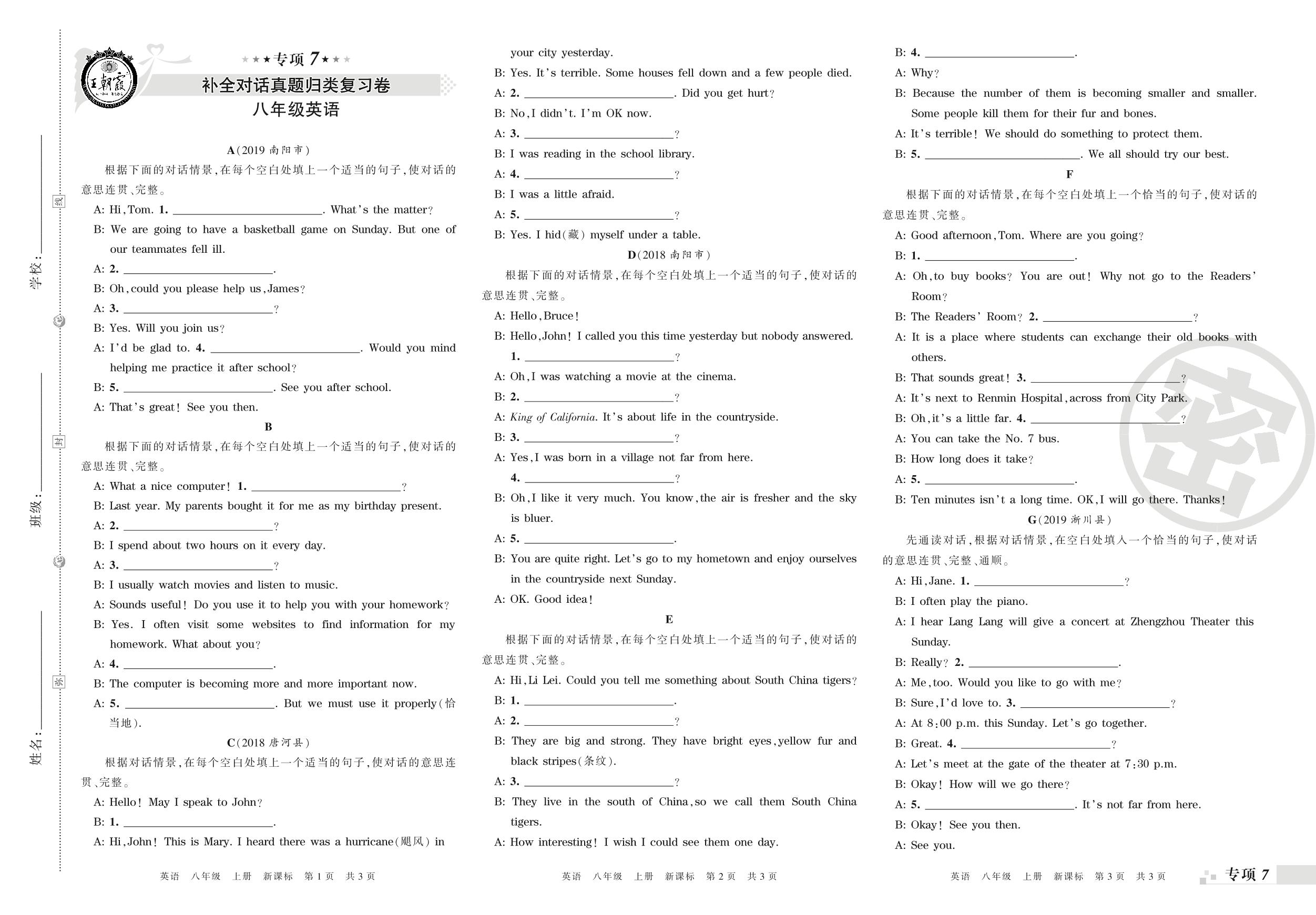 王朝霞期末专项卷——补全对话、书面表达真题归类复习八年级上册英语(新课版)_R210809112223【0】