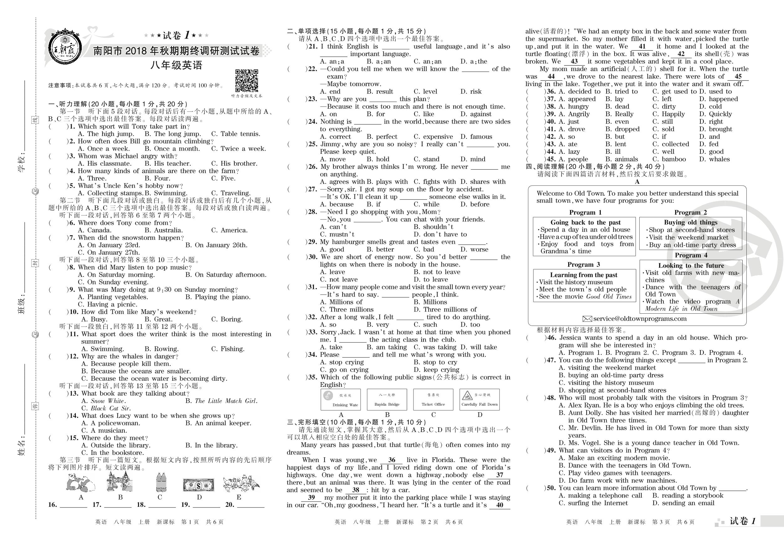 2018-2019学年第一学期南阳市八年级英语试卷(新课版)_R210809112231【1】
