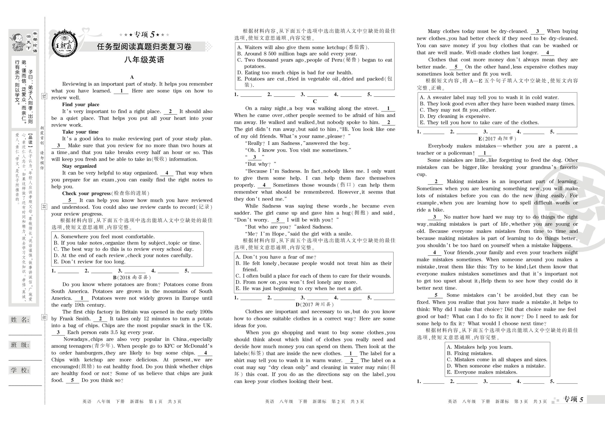 王朝霞期末专项卷——任务型阅读、词语运用真题归类复习卷八年级下册英语(新课版)_R210809112401【0】
