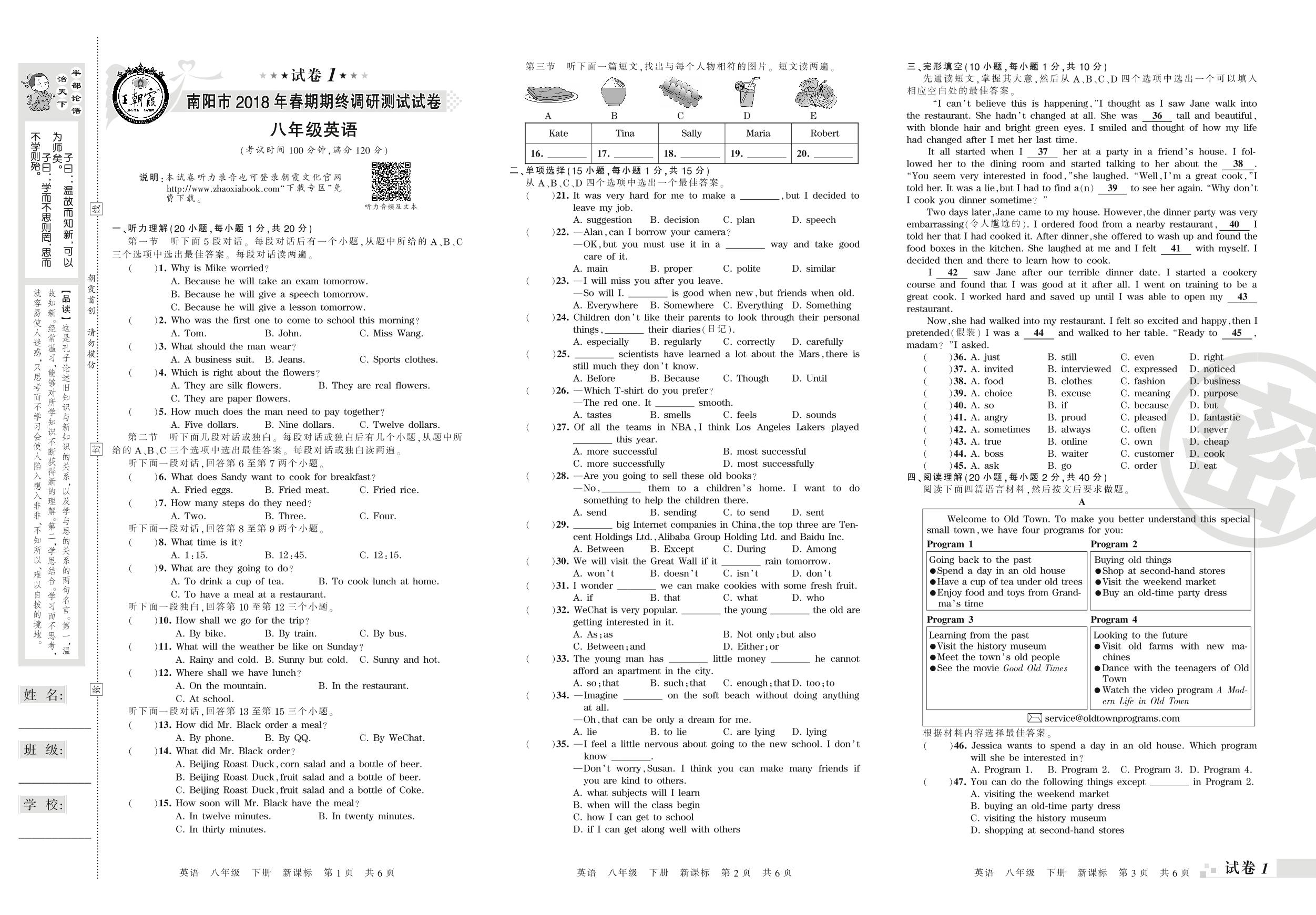 2017-2018学年第二学期南阳市八年级英语试卷(新课版)_R210809112416【1】