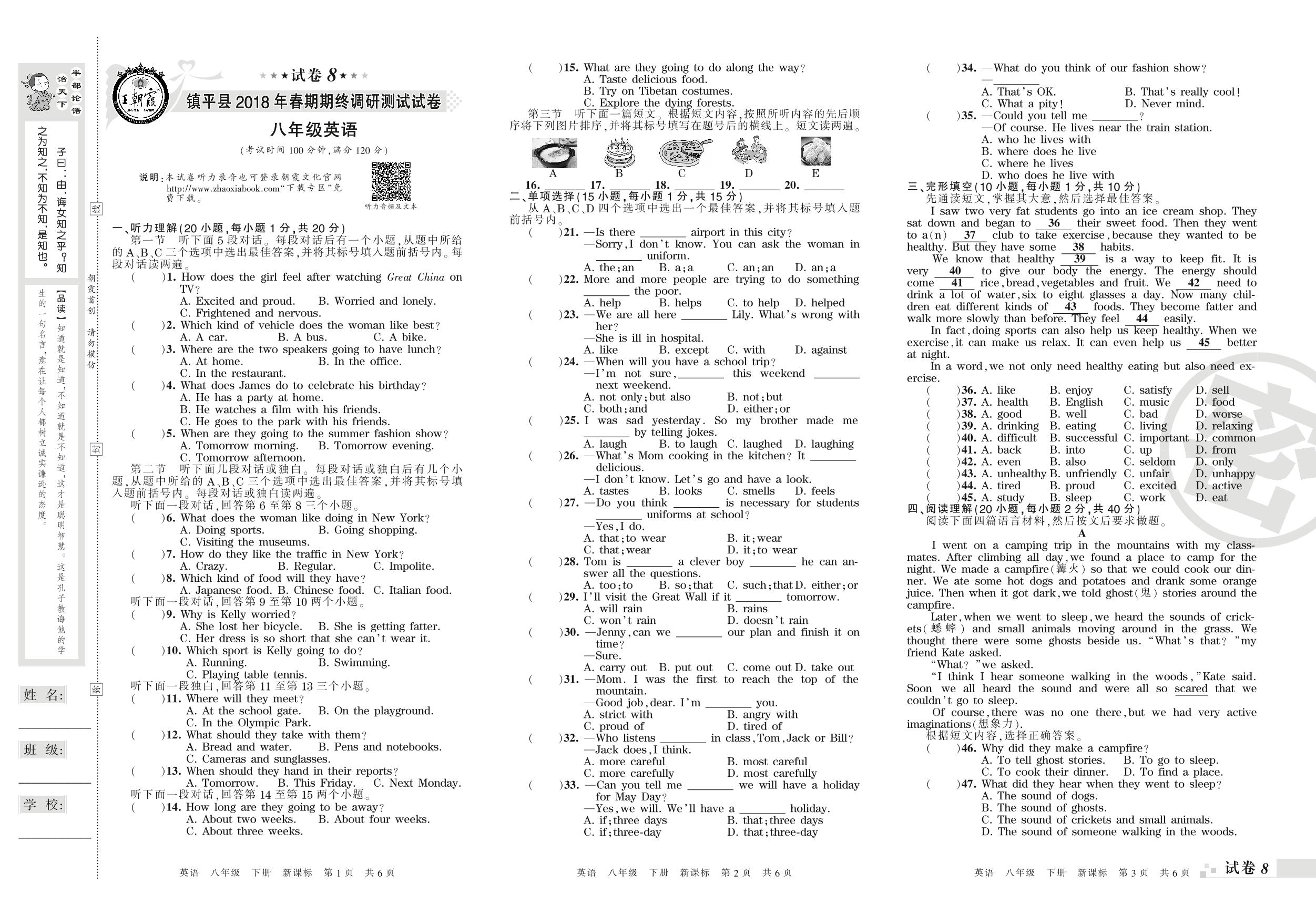 2017-2018学年第二学期南阳市镇平县八年级英语试卷(新课版)【8】