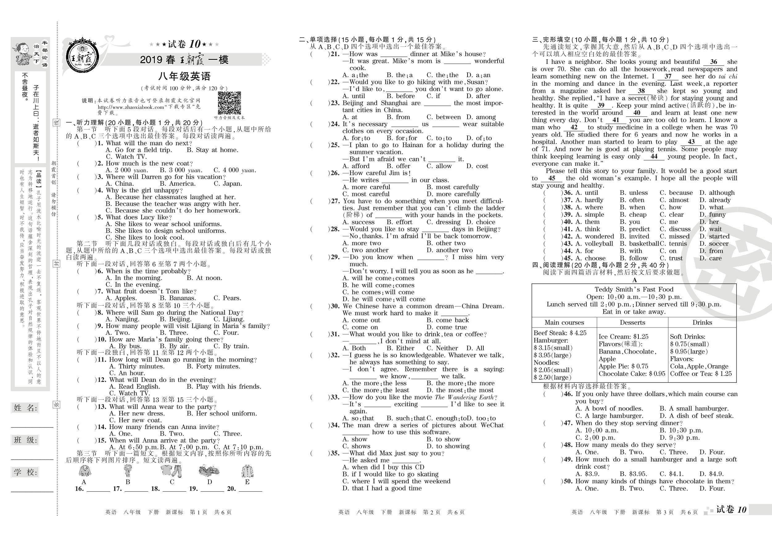 王朝霞期末模拟卷八年级下册英语(新课版)_R210809112539【10】