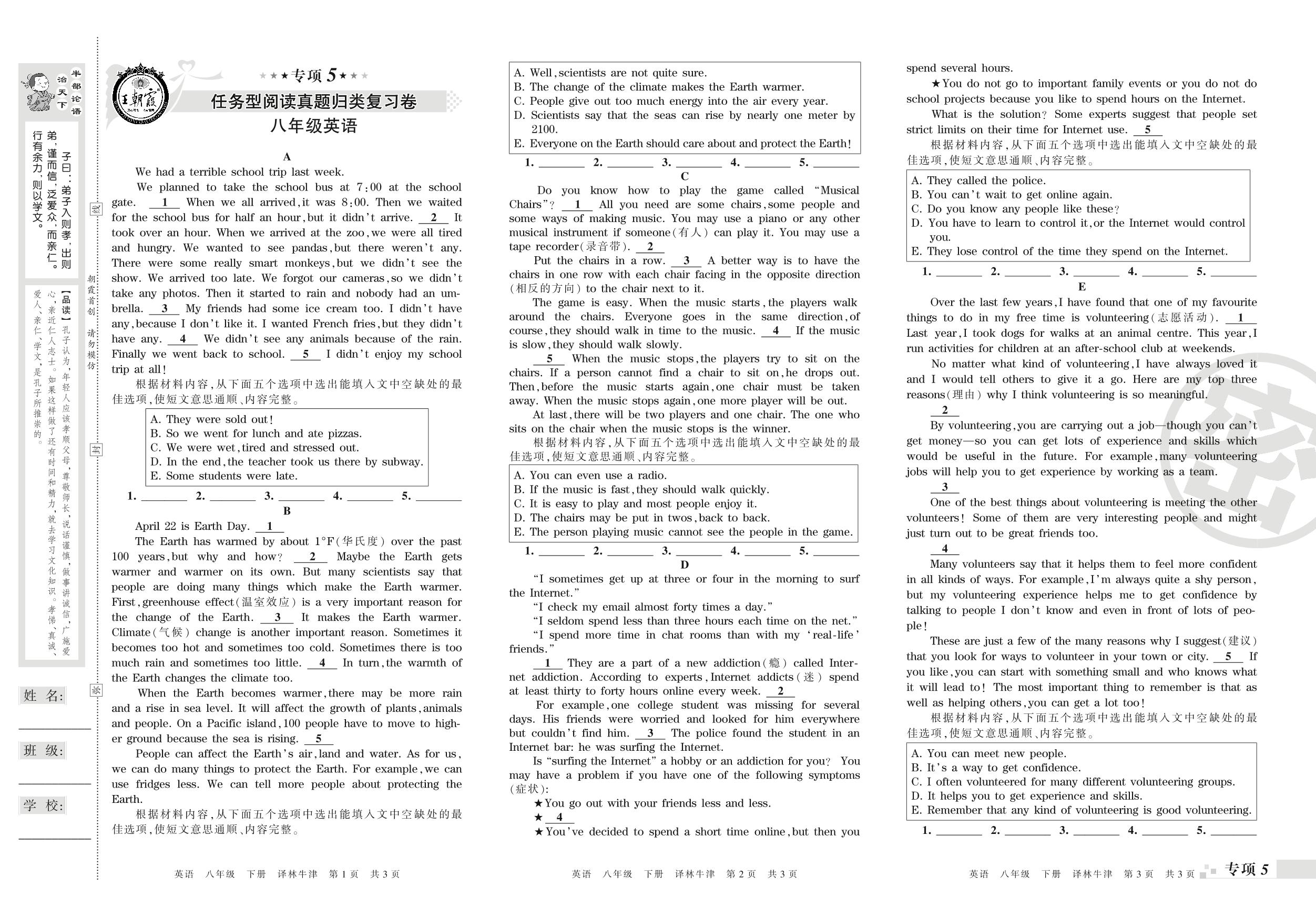 王朝霞期末专项卷——任务型阅读、词语运用真题归类复习卷八年级下册英语(译林版)_R210809112626【0】