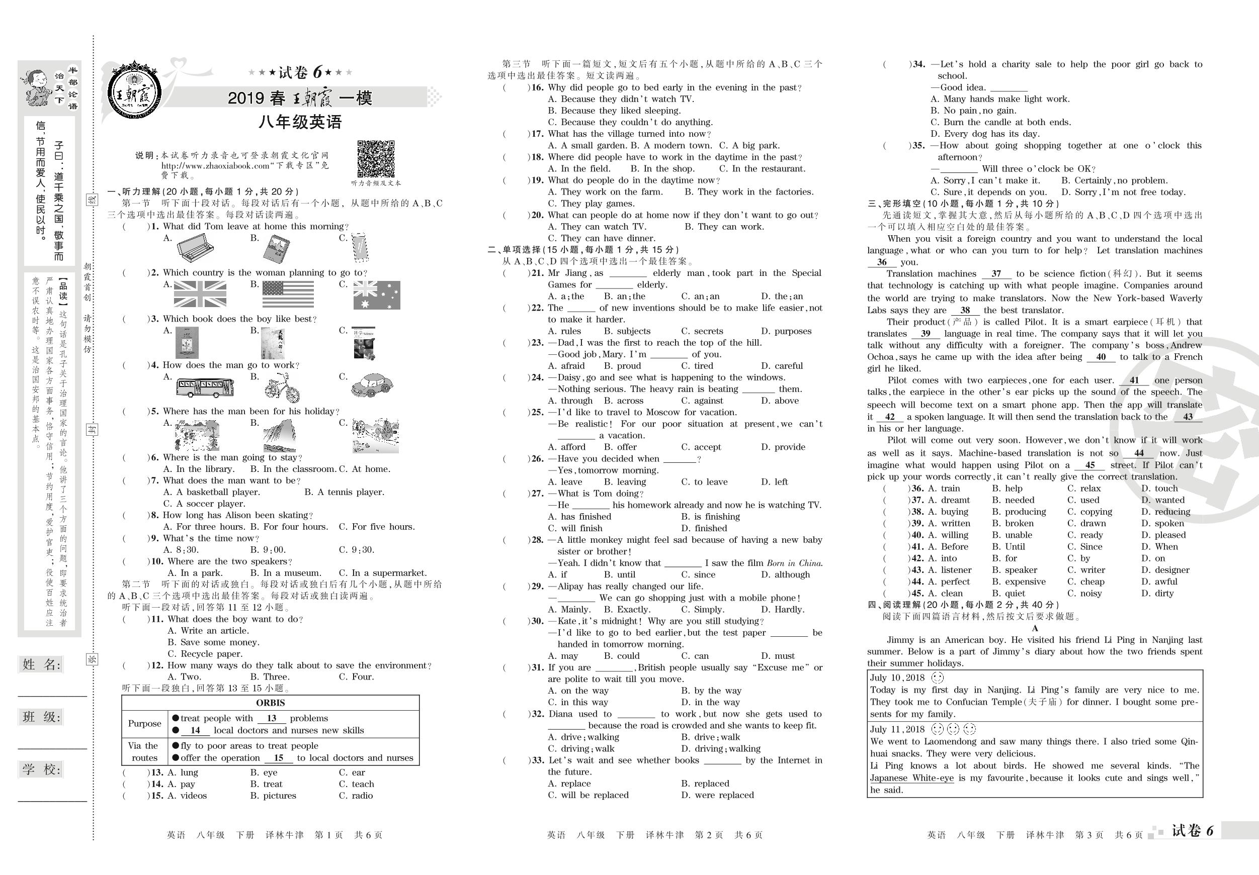 王朝霞期末模拟卷八年级下册英语(译林版)_R210809112733【6】