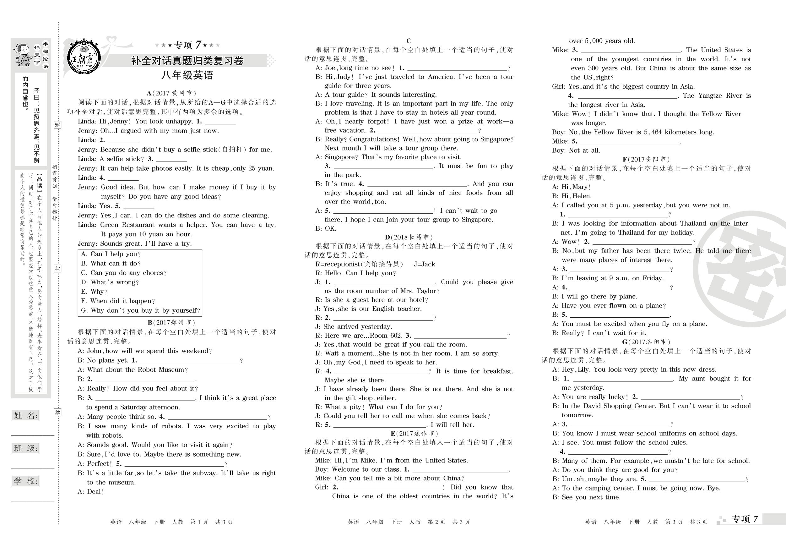 王朝霞期末专项卷——补全对话真题归类复习、书面表达真题归类复习八年级下册英语(人教版)_R210809113039【0】