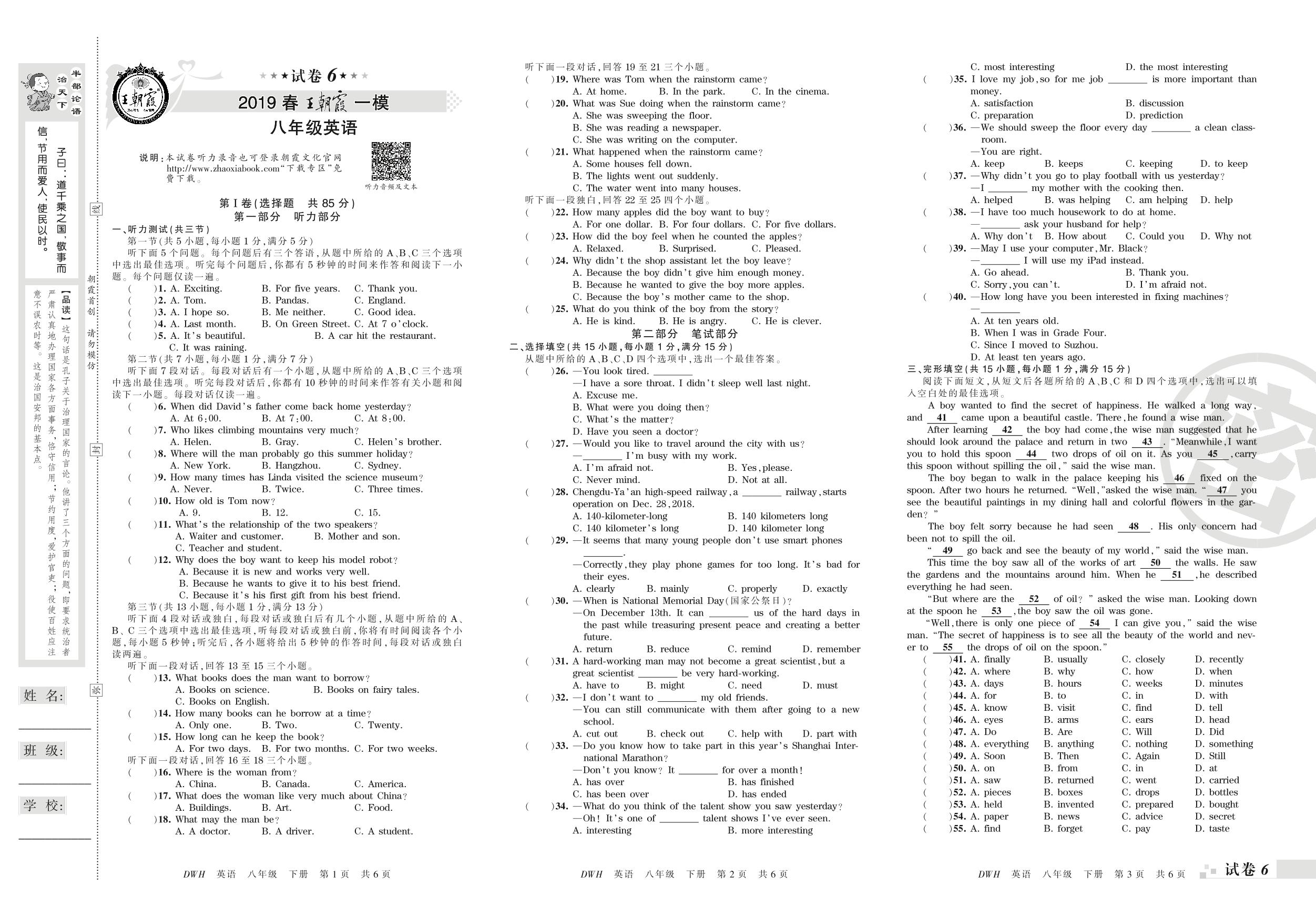 王朝霞期末模拟卷八年级下册英语(人教版)_R210809113418【6】
