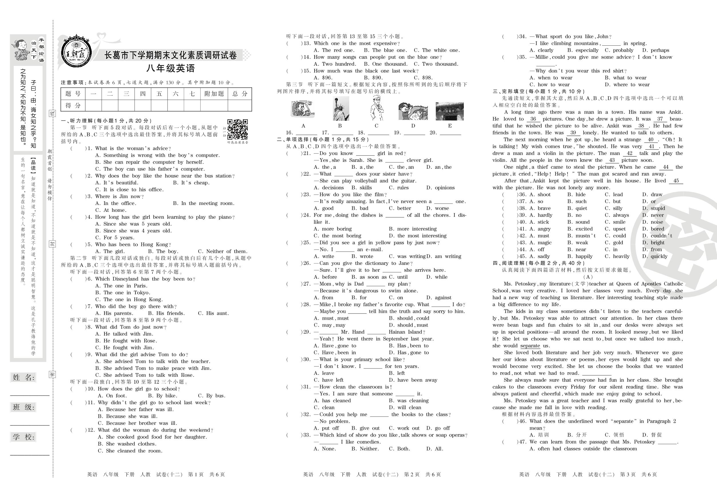 2015-2016学年第二学期长葛市八年级英语试卷(人教版)【12】