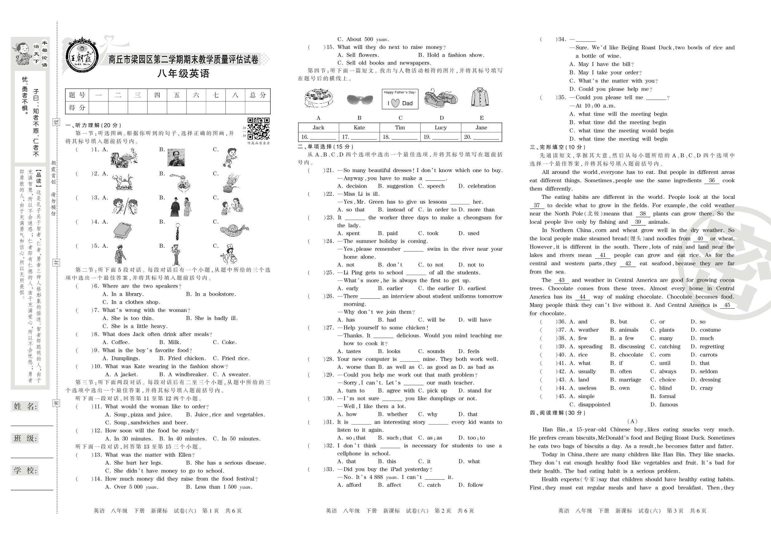 2015-2016学年第二学期商丘市梁园区八年级英语试卷(新课版)【6】