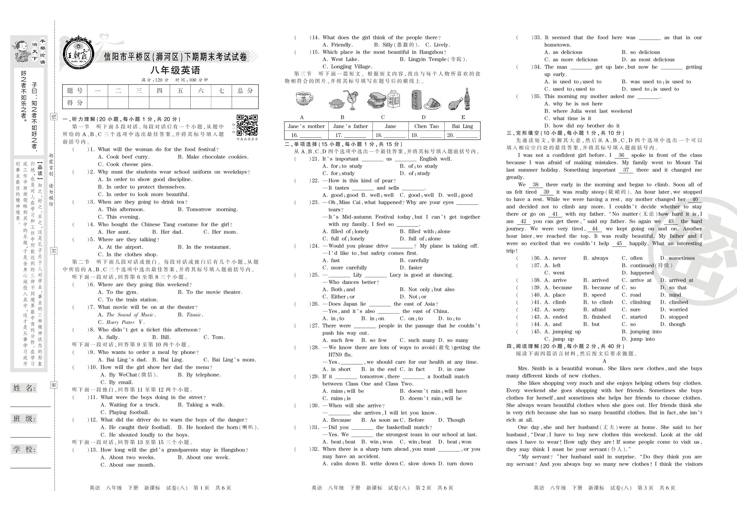 2015-2016学年第二学期信阳市平桥区(浉河区)八年级英语试卷(新课版)【8】