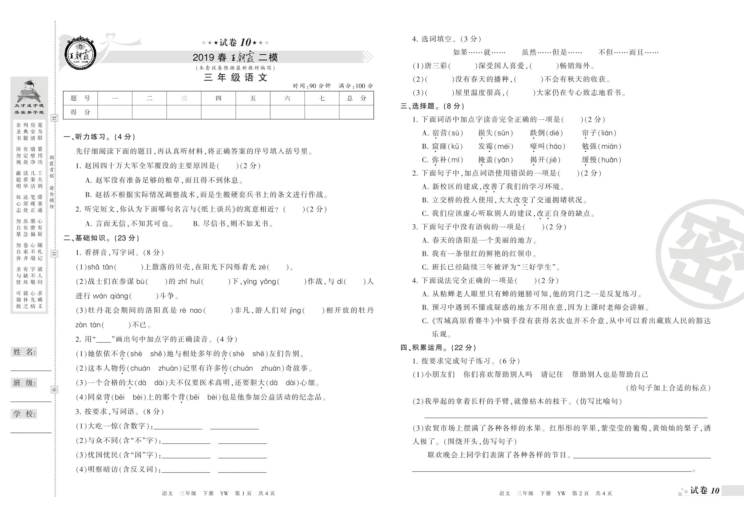 王朝霞期末模拟卷三年级下册语文(语文版)_R21080191618【10】