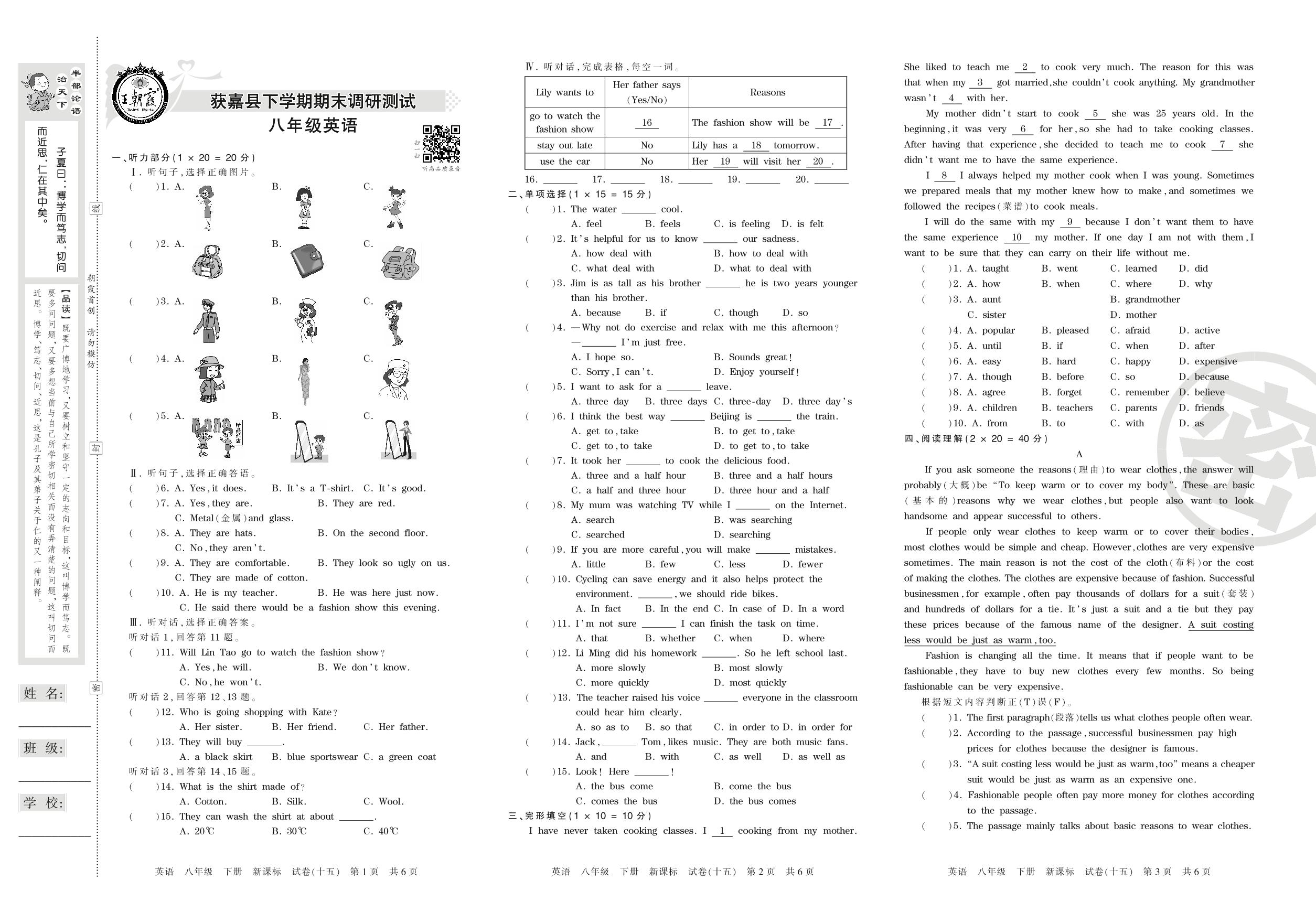 2015-2016学年第二学期新乡市获嘉县八年级英语试卷(新课版)【15】