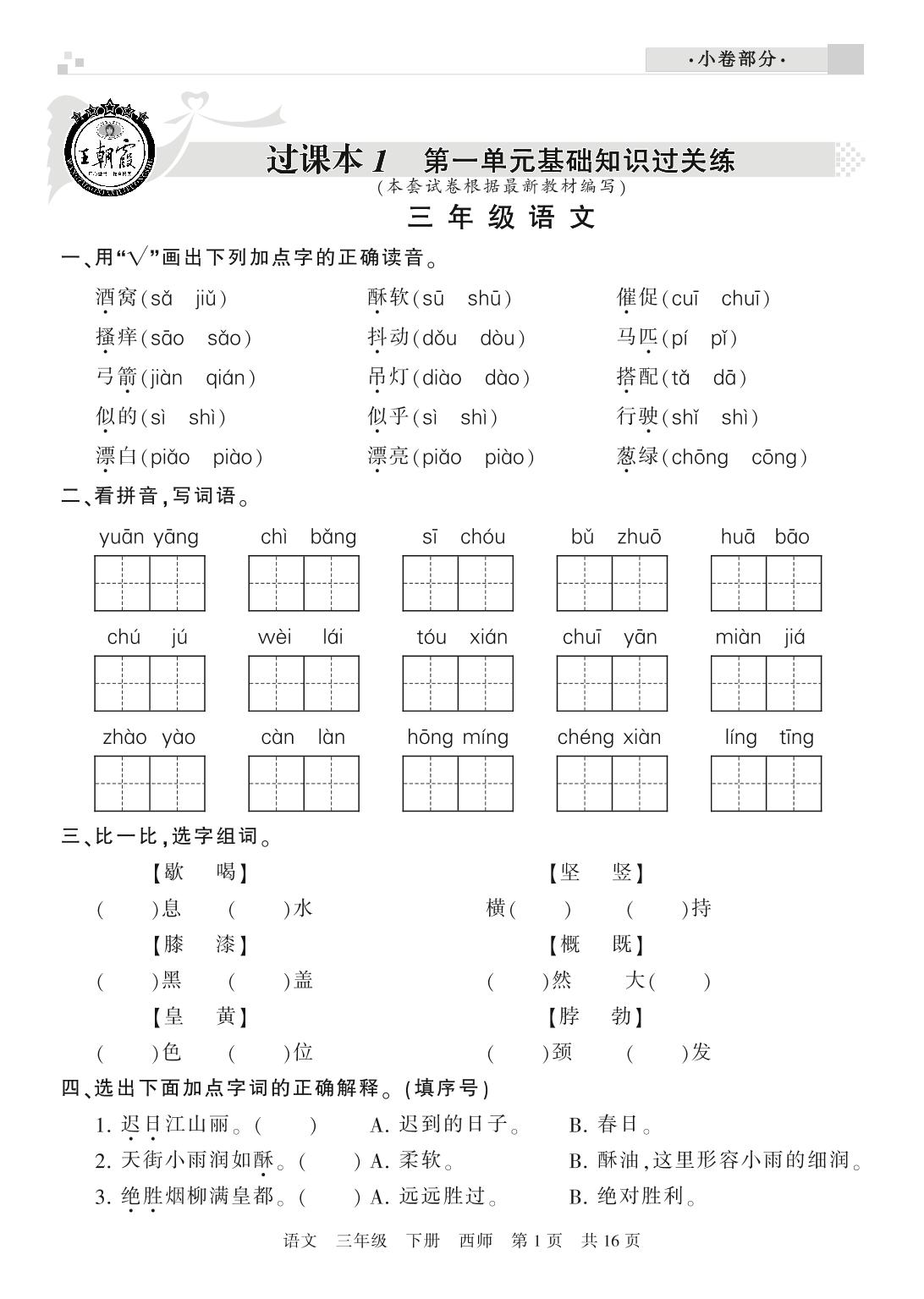 王朝霞期末小卷三年级下册语文(西师版)_R21080191622【0】