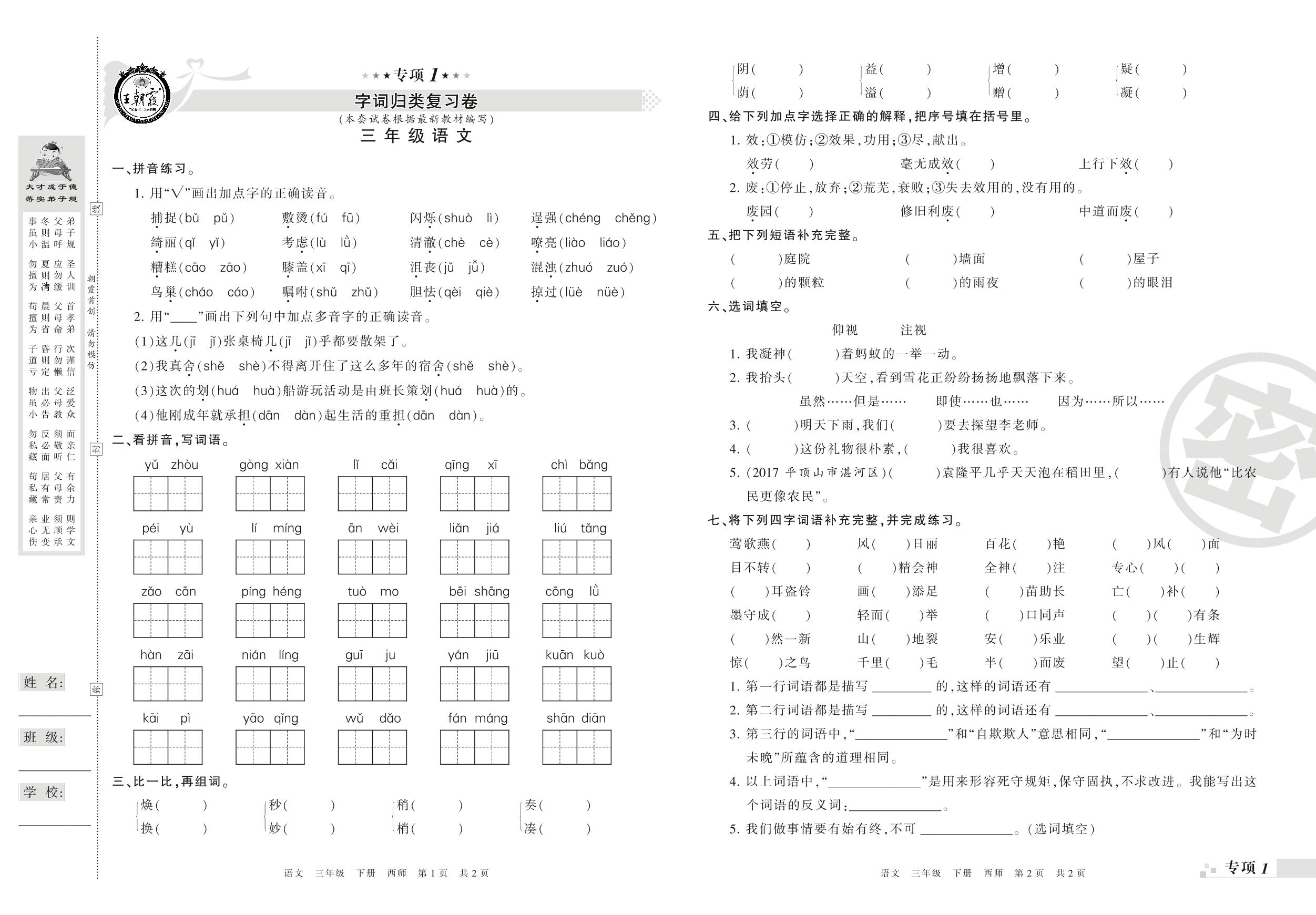 三年级语文西师版下册专项卷