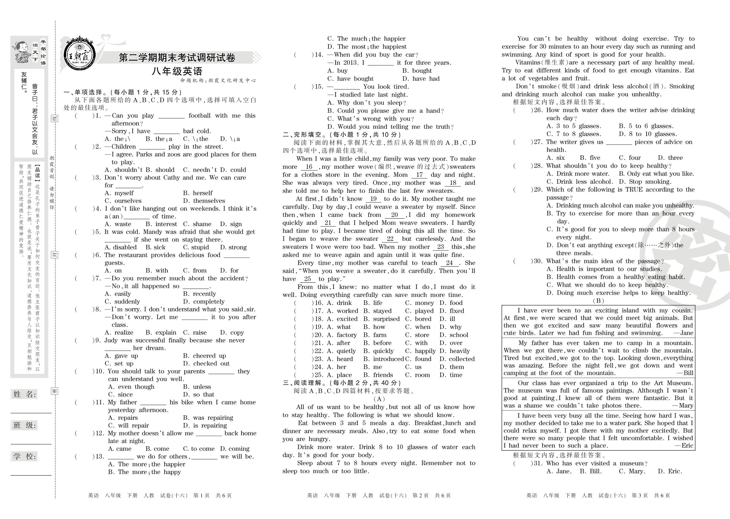 王朝霞期末调研卷八年级下册英语(人教版)【16】