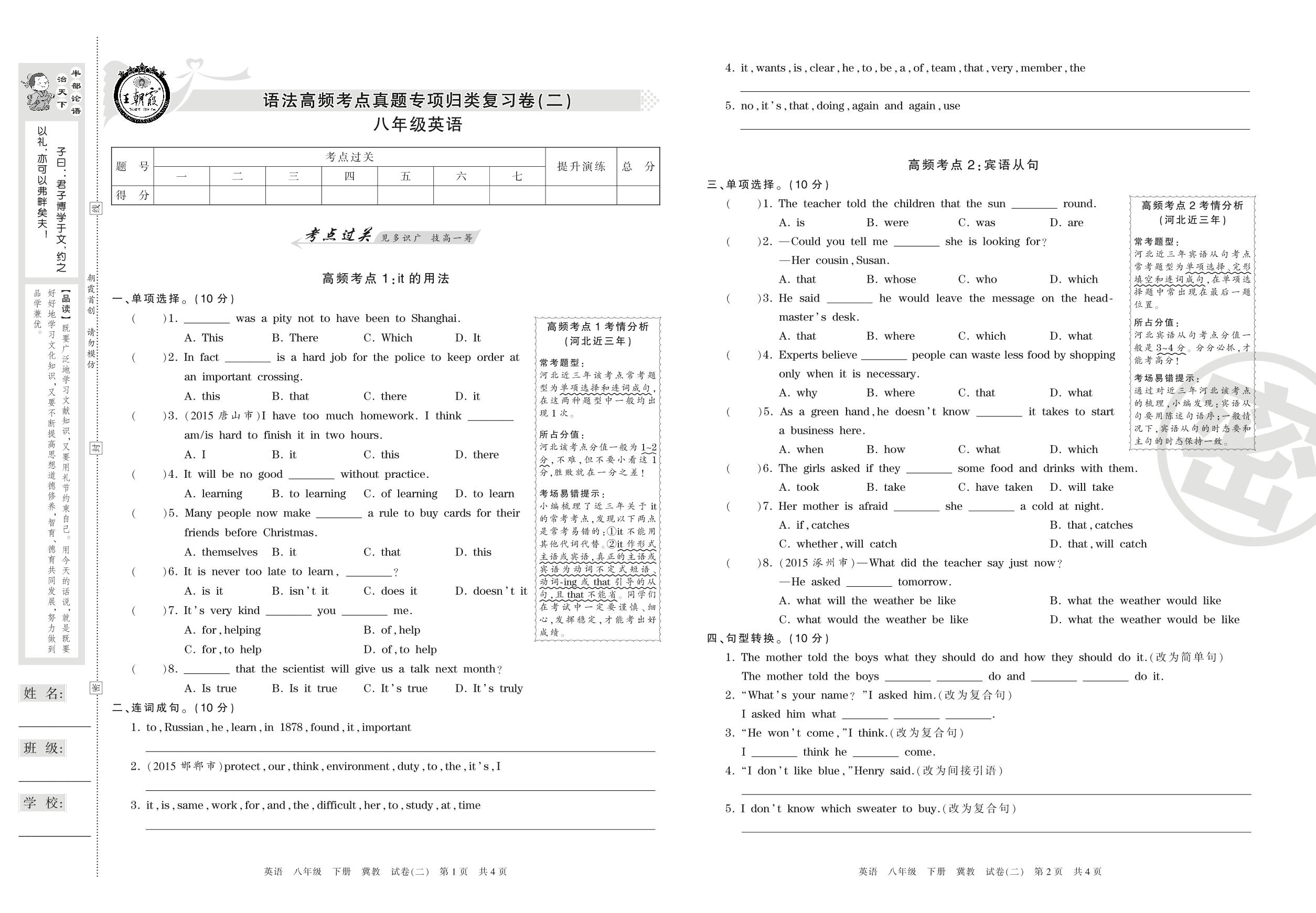 王朝霞期末专项卷八年级下册英语(冀教版)_R210809114306【2】