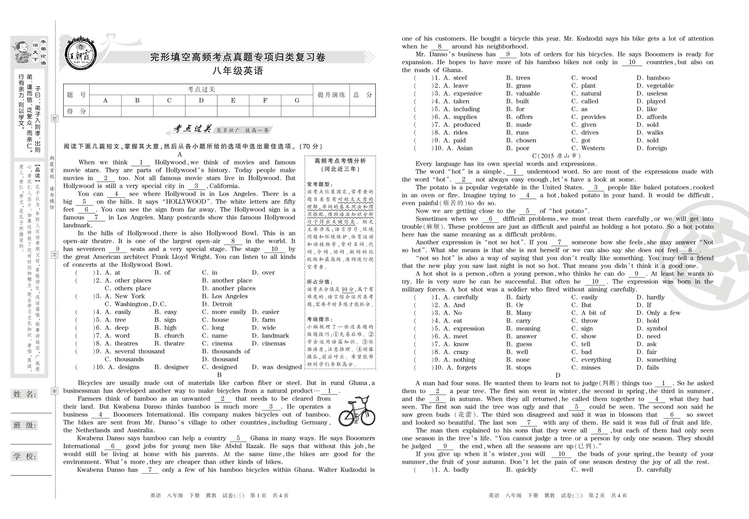 八年级英语冀教版下册专项卷