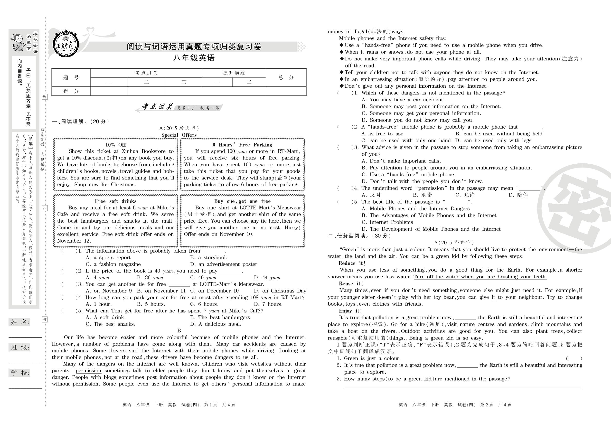 王朝霞期末专项卷八年级下册英语(冀教版)_R210809114317【4】