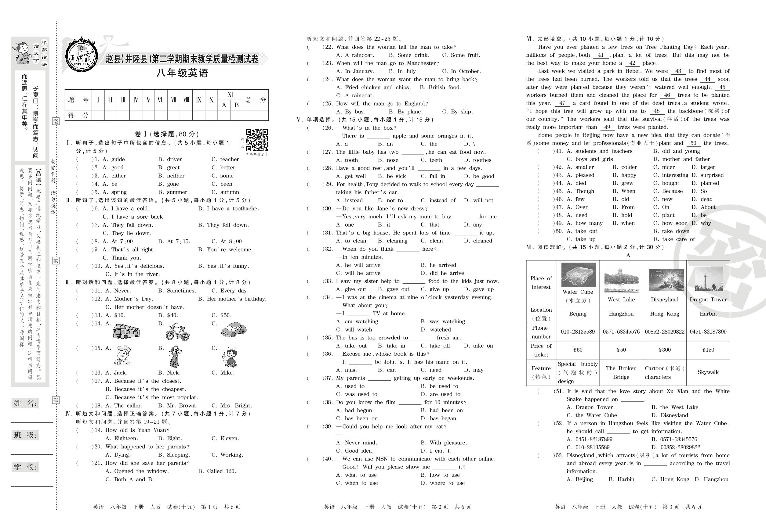 2015-2016学年第二学期石家庄市赵县(陉县)八年级英语试卷(人教版)【15】