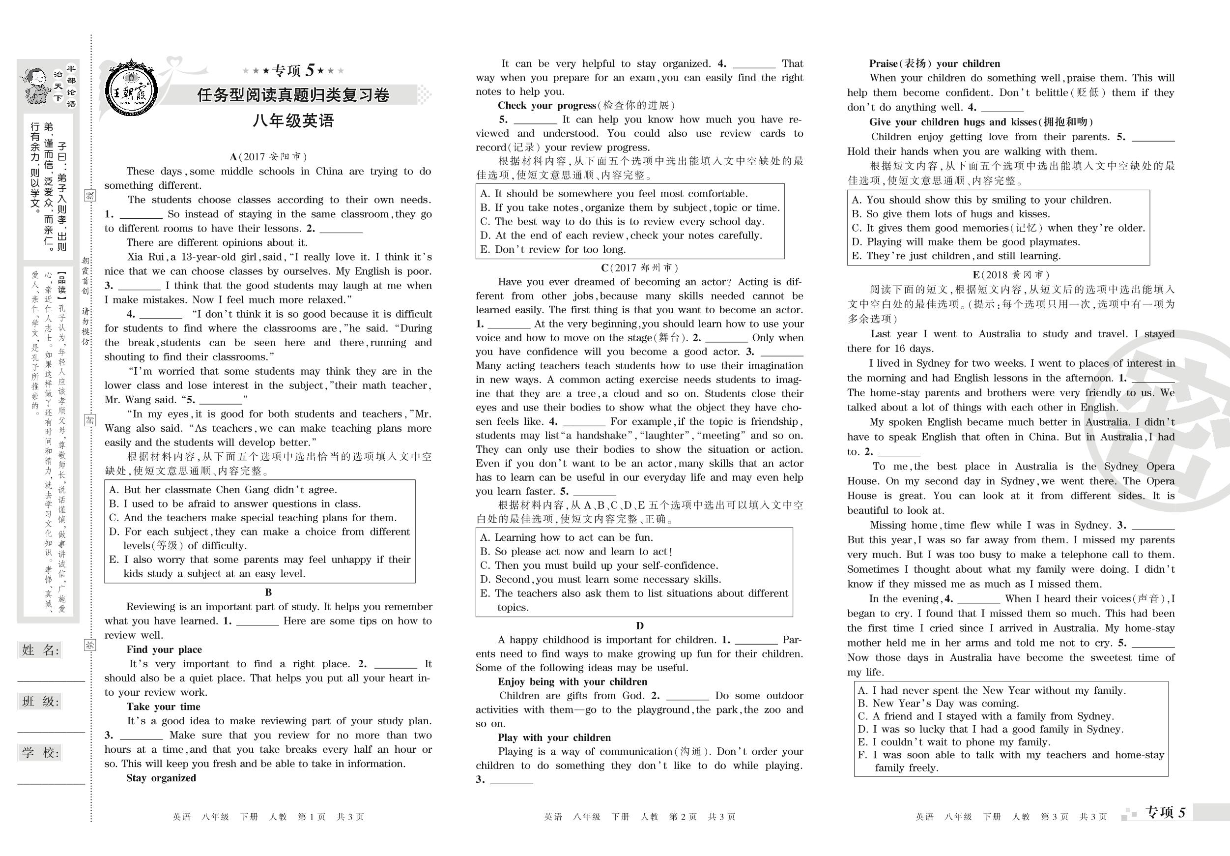 王朝霞期末专项卷——任务型阅读真题归类复习、词语运用真题归类复习八年级下册英语(人教版)【0】