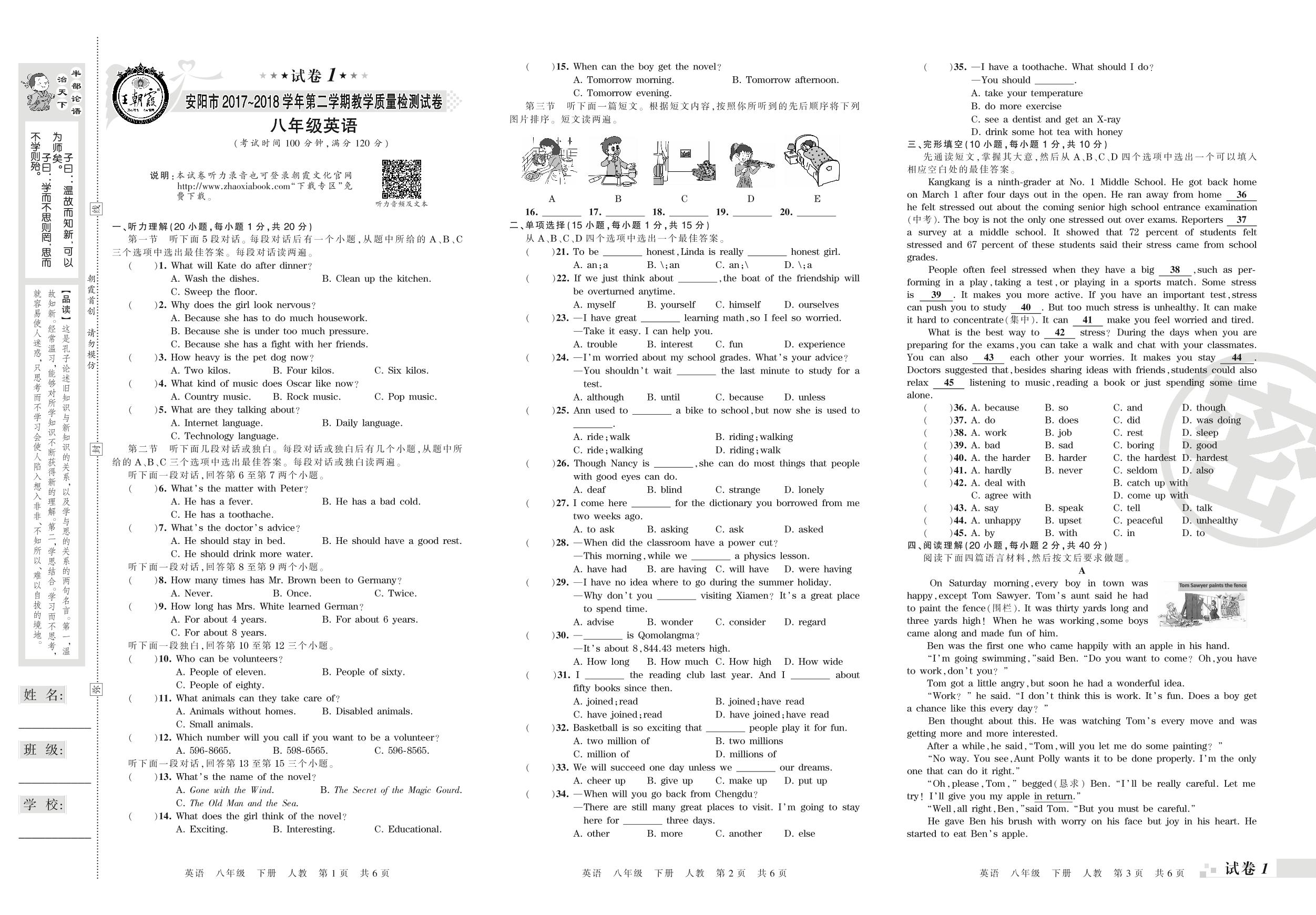 2017-2018学年第二学期安阳市八年级英语试卷(人教版)【1】