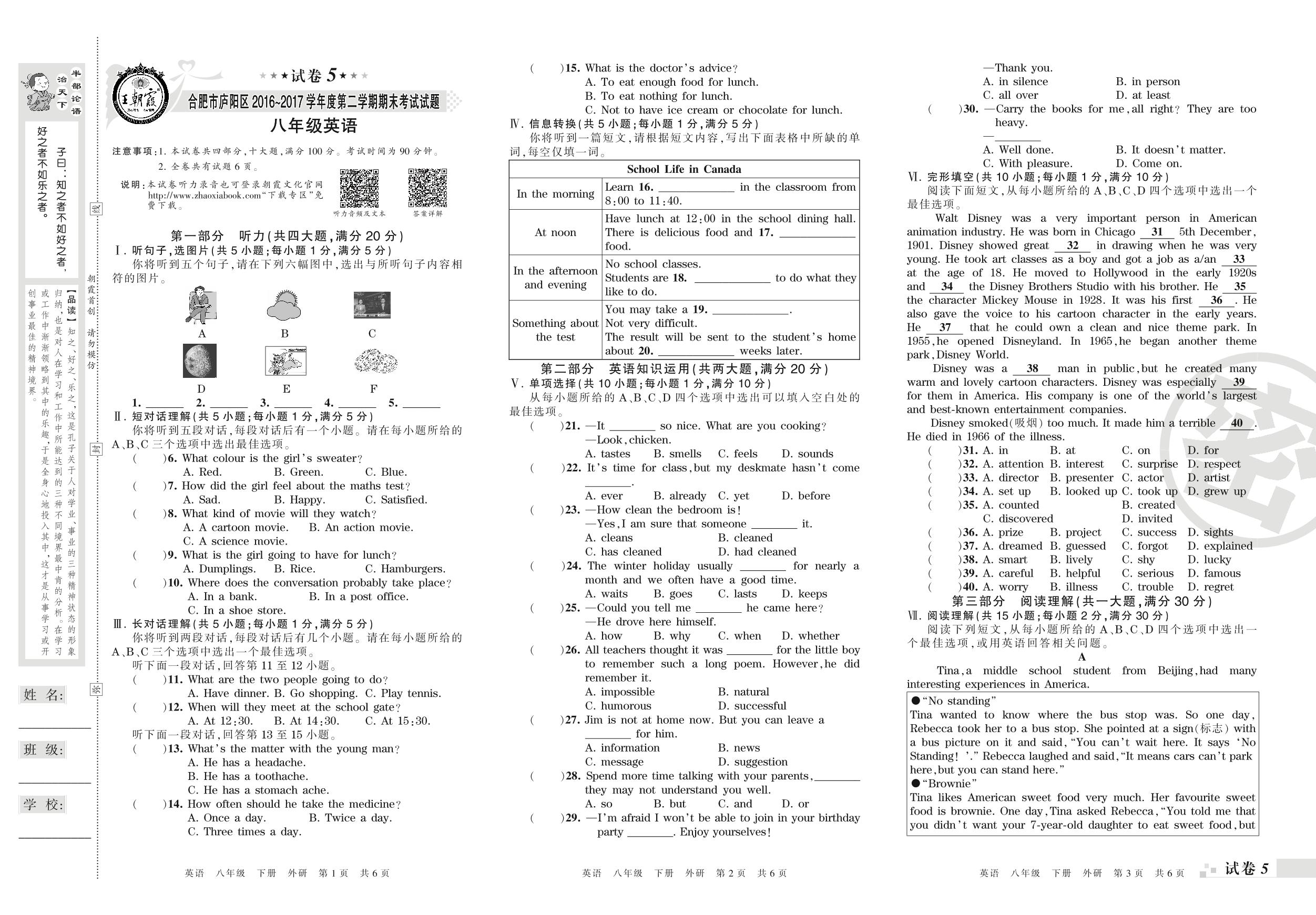 2016-2017学年第二学期合肥市庐阳区八年级英语试卷(外研版)_R210809115641【5】