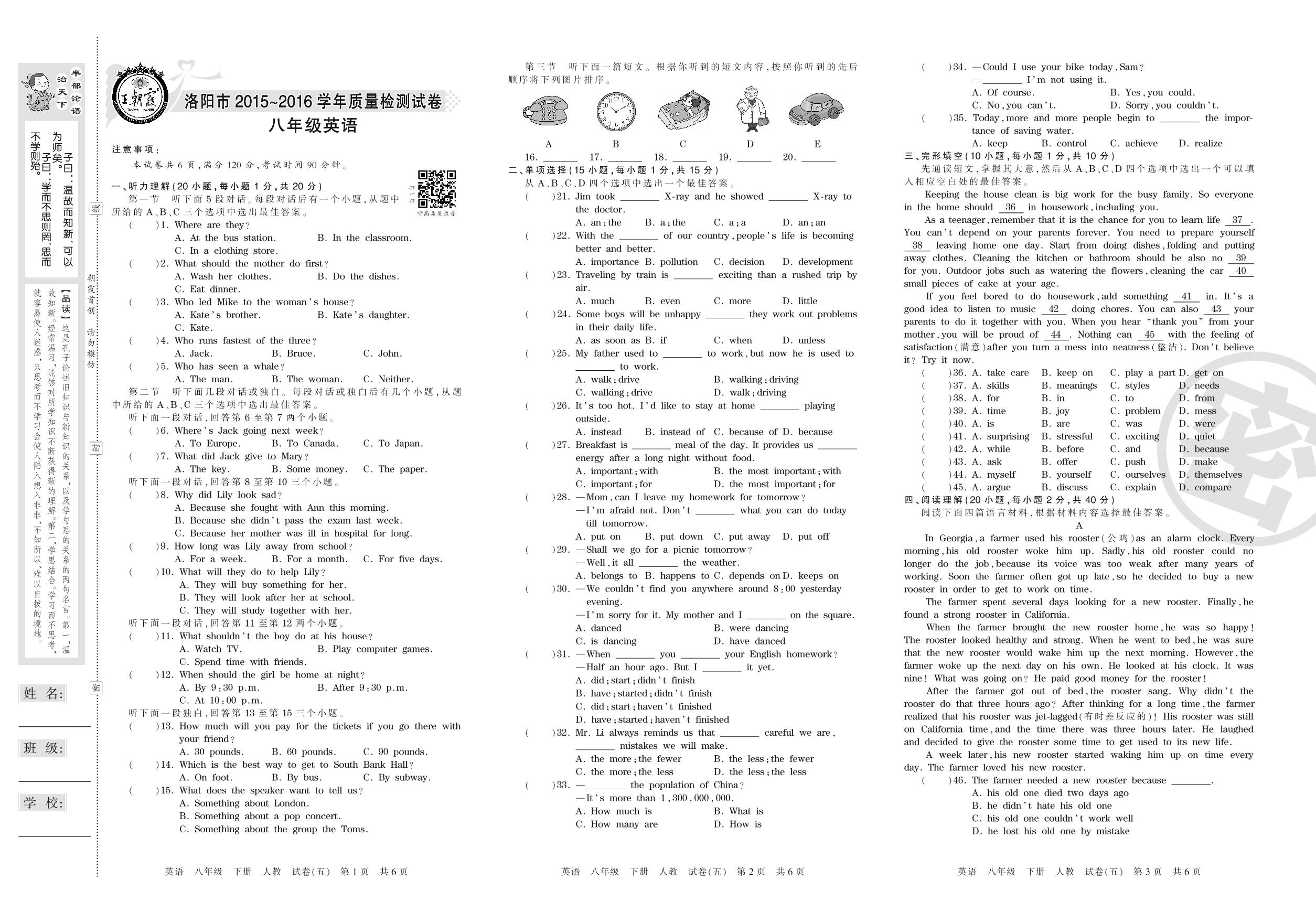 2015-2016学年第二学期洛阳市八年级英语试卷(人教版)【5】