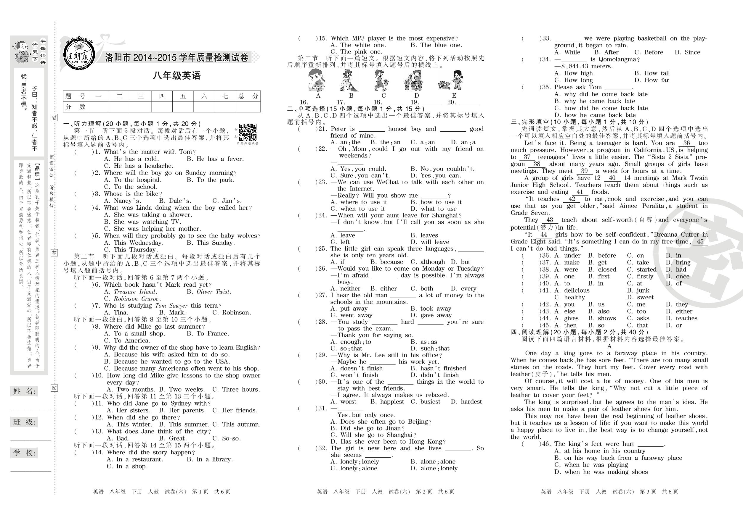 2014-2015学年第二学期洛阳市八年级英语试卷(人教版)【6】