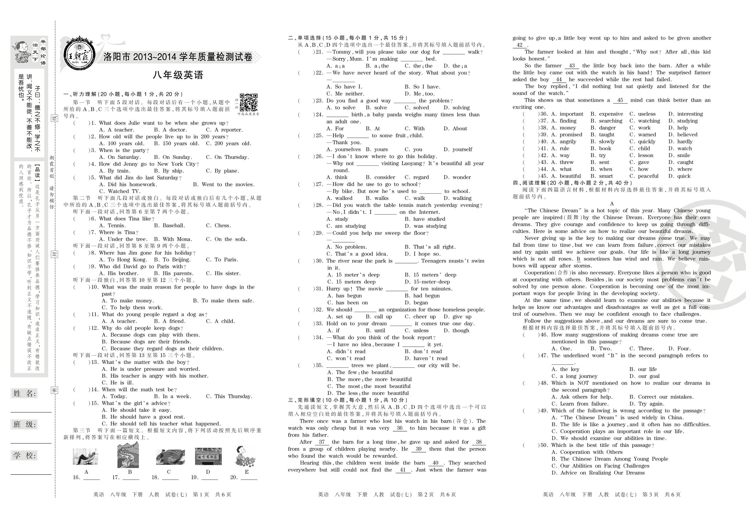 2013-2014学年第二学期洛阳市八年级英语试卷(人教版)【7】