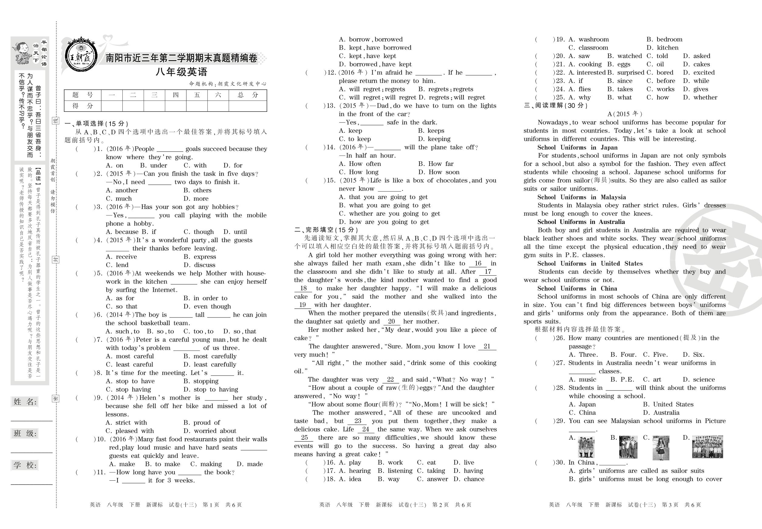 南阳市近三年精编八年级下册英语(新课版)【13】