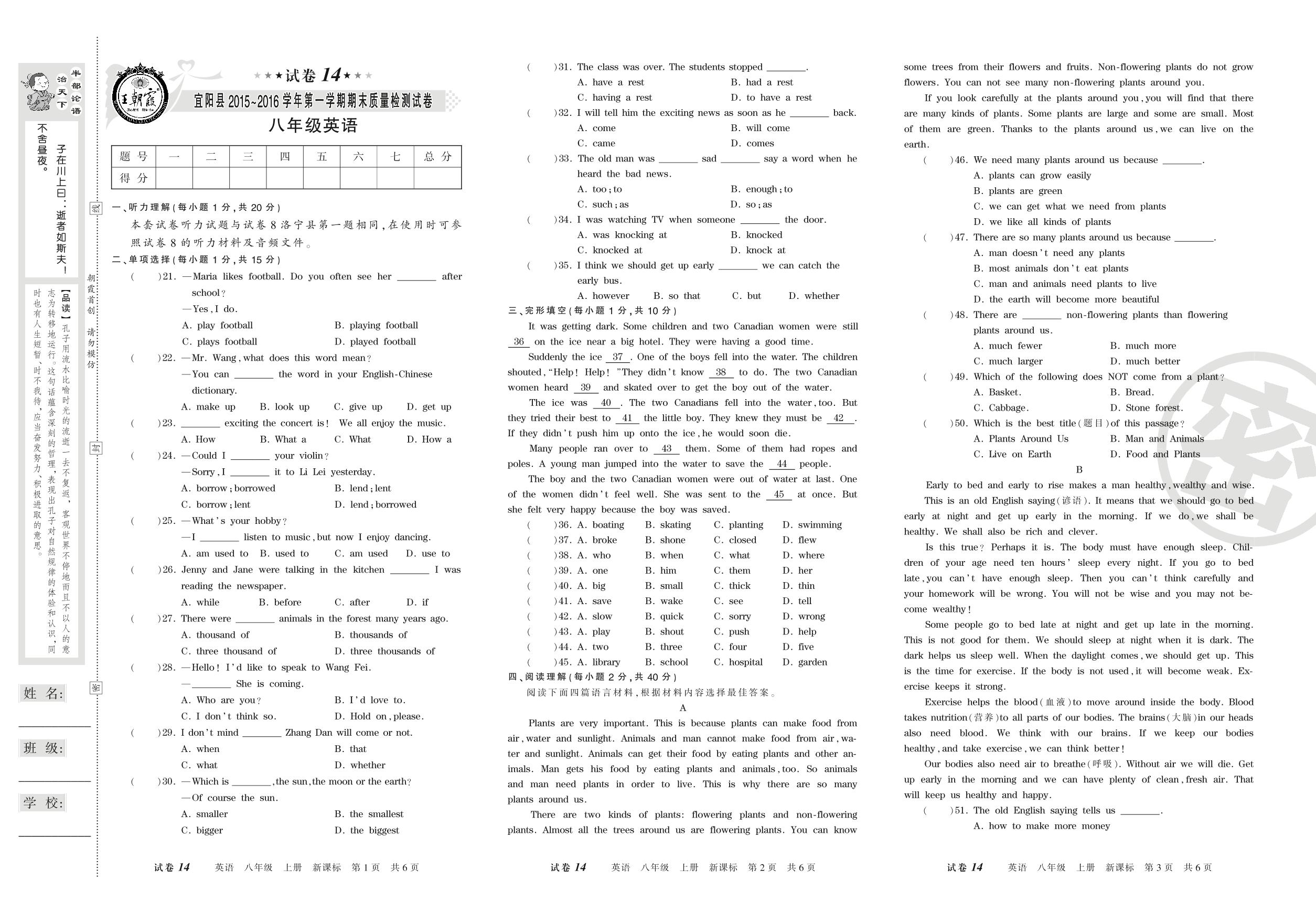 2016-2017学年第一学期洛阳市宜阳县八年级英语试卷(新课版)【14】