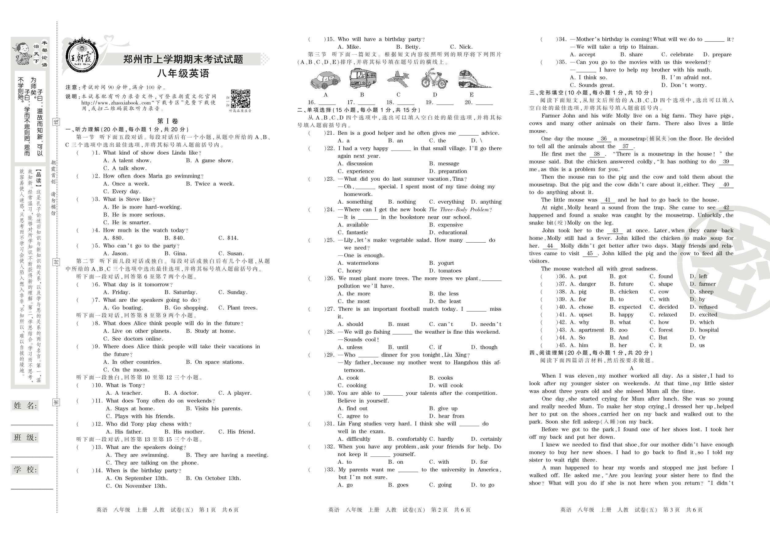 2016-2017学年第一学期郑州市八年级英语试卷(人教版)_R210809122405【5】